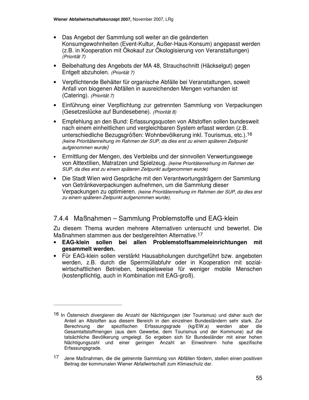 Wiener Abfallwirtschaftskonzept 2007 : im Rahmen der strategischen Umweltprüfung 2006/07 / Magistratsabteilung 48 - Abfallwirtschaft Straßenreinigung und Fuhrpark ; Autorinnen: Martina Ableidinger, Kerstin Arbter, Walter Hauer [und 3 weitere]