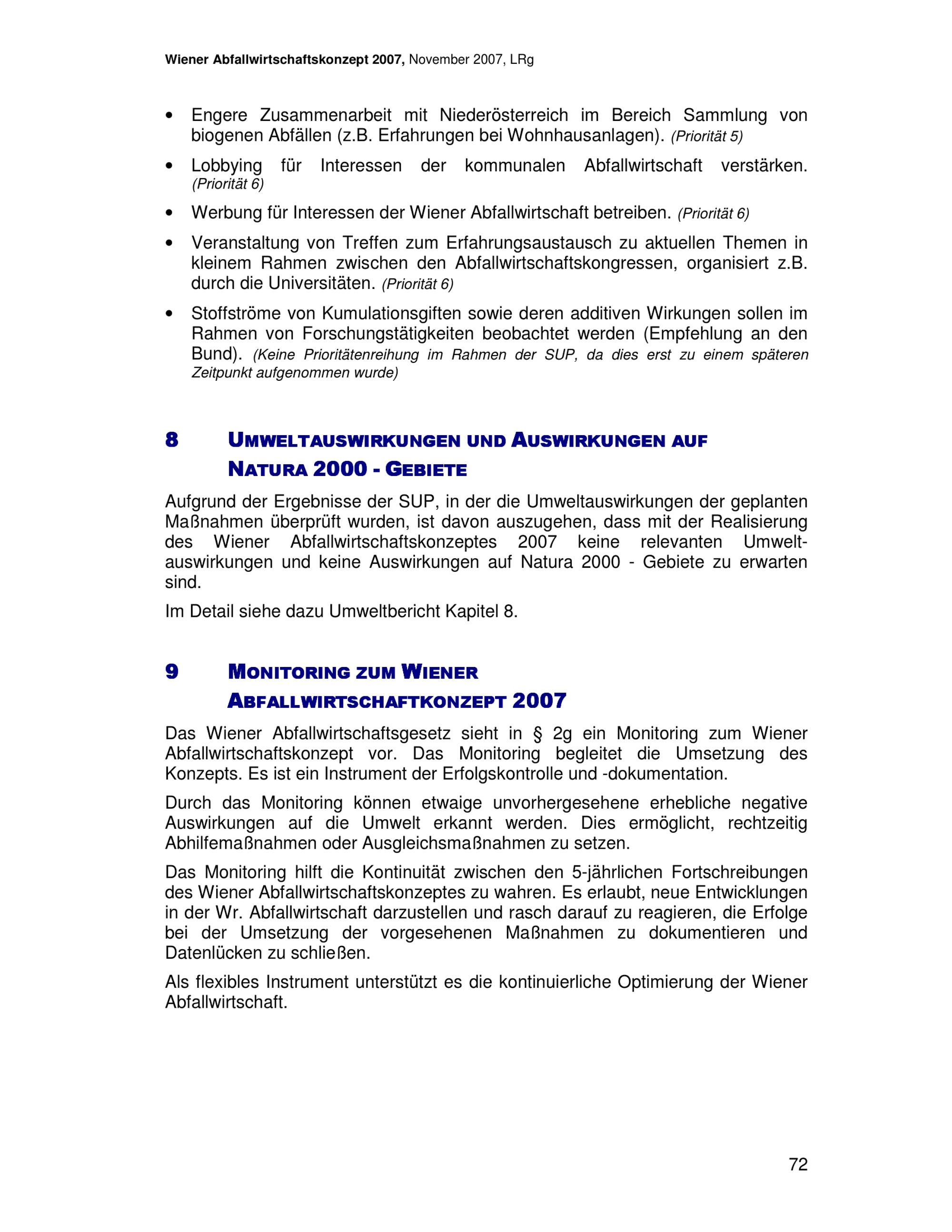 Wiener Abfallwirtschaftskonzept 2007 : im Rahmen der strategischen Umweltprüfung 2006/07 / Magistratsabteilung 48 - Abfallwirtschaft Straßenreinigung und Fuhrpark ; Autorinnen: Martina Ableidinger, Kerstin Arbter, Walter Hauer [und 3 weitere]