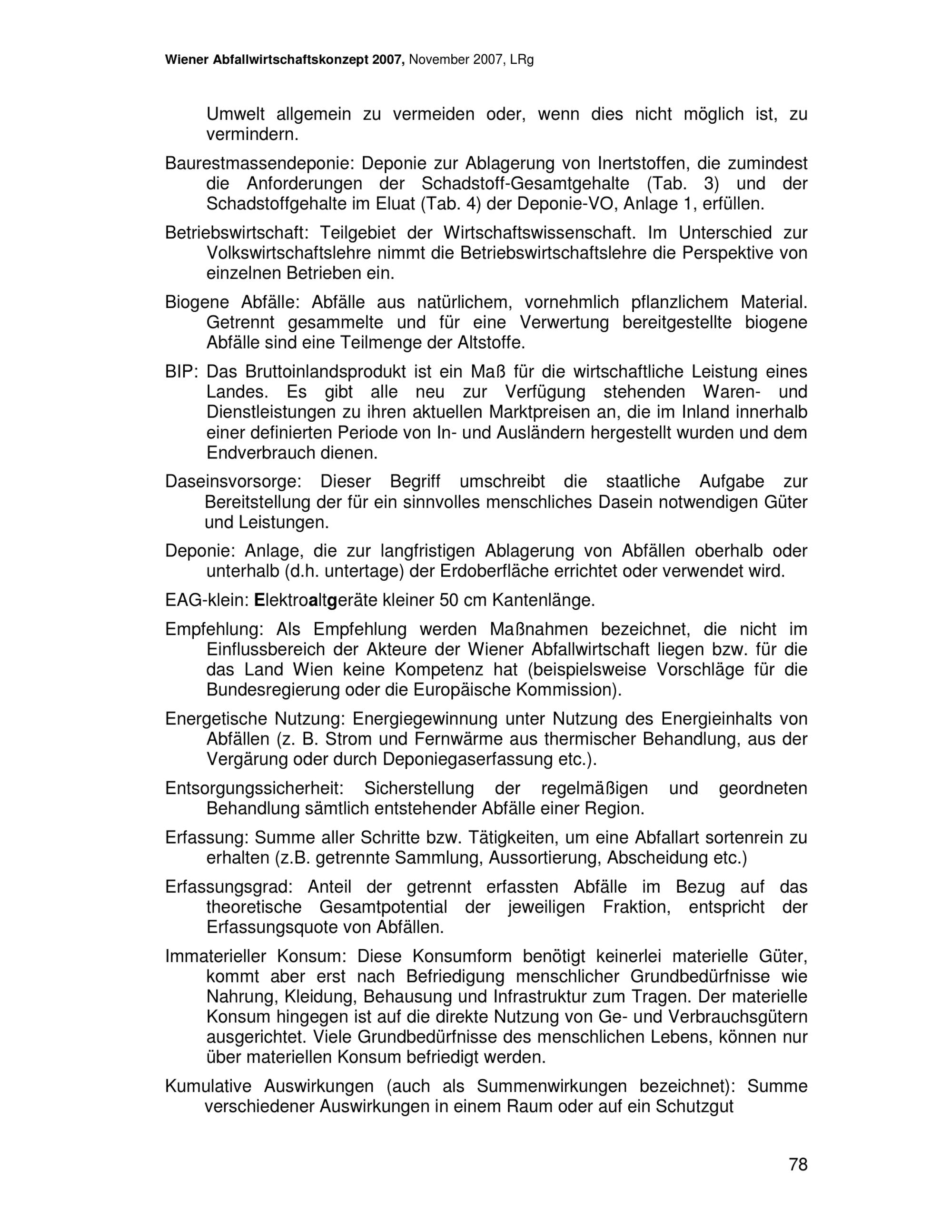 Wiener Abfallwirtschaftskonzept 2007 : im Rahmen der strategischen Umweltprüfung 2006/07 / Magistratsabteilung 48 - Abfallwirtschaft Straßenreinigung und Fuhrpark ; Autorinnen: Martina Ableidinger, Kerstin Arbter, Walter Hauer [und 3 weitere]