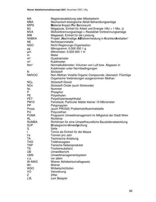 Wiener Abfallwirtschaftskonzept 2007 : im Rahmen der strategischen Umweltprüfung 2006/07 / Magistratsabteilung 48 - Abfallwirtschaft Straßenreinigung und Fuhrpark ; Autorinnen: Martina Ableidinger, Kerstin Arbter, Walter Hauer [und 3 weitere]