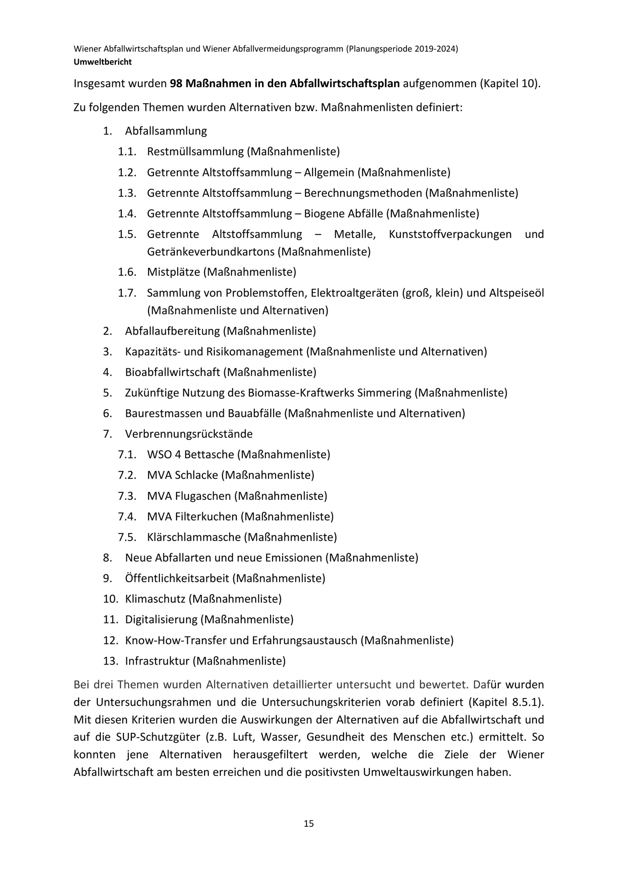 Wiener Abfallwirtschaftsplan und Wiener Abfallvermeidungsprogramm (Planungsperiode 2019-2024) : Umweltbericht zur strategischen Umweltprüfung / Magistratsabteilung 48 - Abfallwirtschaft Straßenreinigung und Fuhrpark ; Autorinnen Lukas Egle, Christian Rolland, Johanna Leutgöb, Elmar Schwarzlmüller