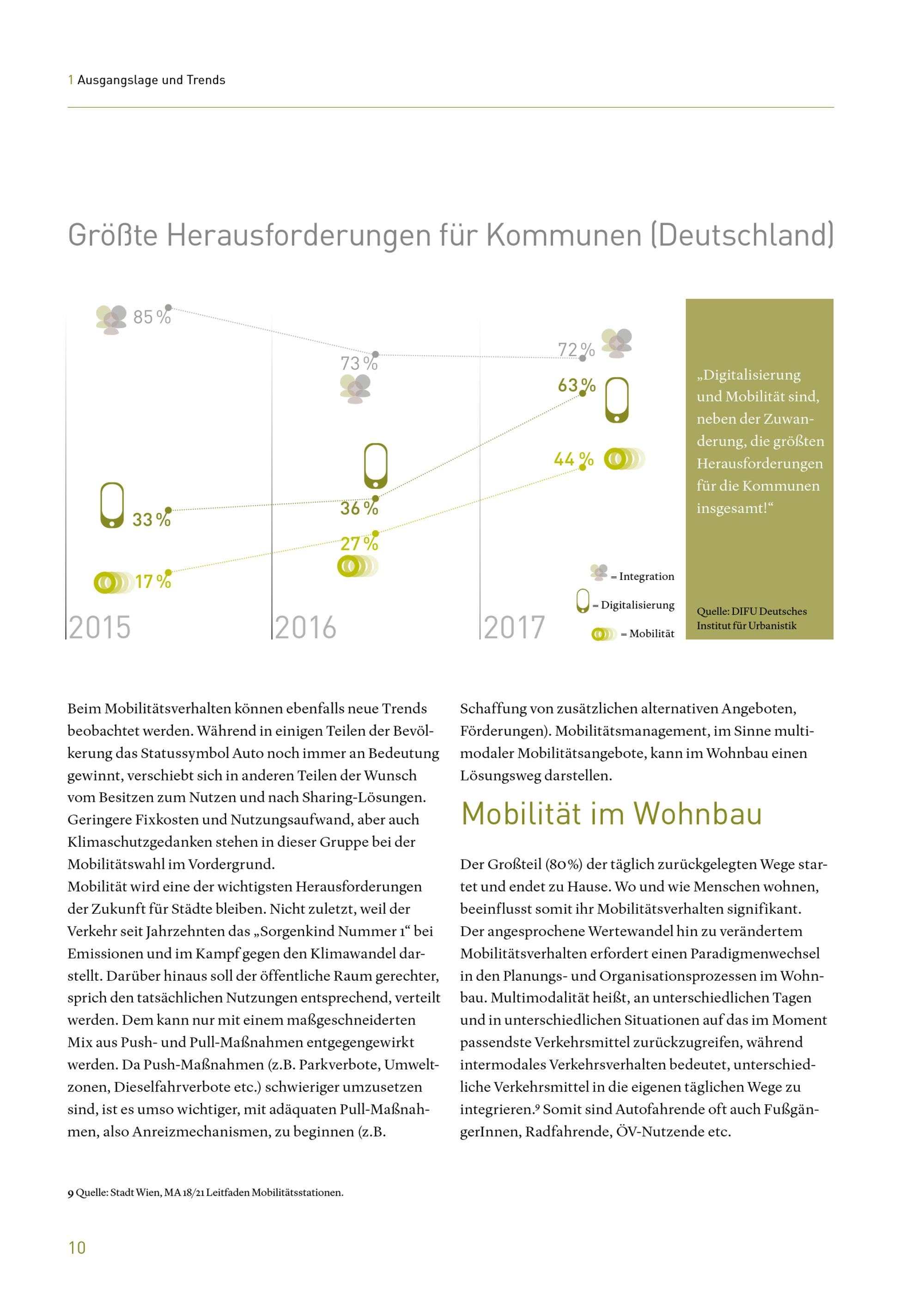 Leitfaden Mobilitätsmaßnahmen im Wohnbau : Übersicht und Planungsempfehlungen für Wohnbauvorhaben in Wien / Stadt Wien - Stadtteilplanung und Flächenwidmung ; Projektleitung und inhaltliche Erarbeitung: Mag. Gerald Franz, MA (Urban Innovation Vienna) ; inhaltliche Begleitung: DI Alexandra Madreiter (Stadtteilplanung und Flächenwidmung (MA 21) ; Mitarbeit: Mag. Judith Neyer (Urban Innovation Vienna), Carolin Monsberger, BSc (Urban Innovation Vienna), DI Alexander Scholz (Urban Innovation Vienna)