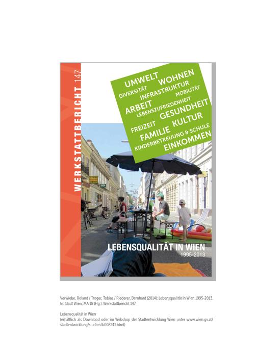 Lebensqualität in Neubaugebieten : Nordbahnhof, Sonnwendviertel, Aspern Seestadt, Mautner-Markhof-Gründe, Liesing / Eigentümer und Herausgeber: Stadtentwicklung Wien, Magistratsabteilung 18 - Stadtentwicklung und Stadtplanung ; Datenanalysen und Text: Tobias Troger, M.A., Ing. Mag. Johannes Gielge