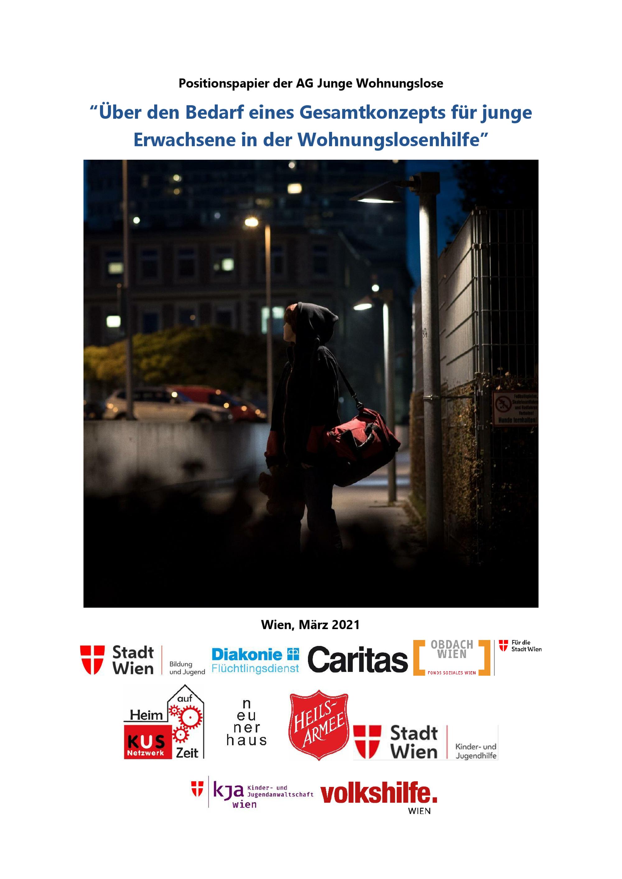 Über den Bedarf eines Gesamtkonzepts für junge Erwachsene in der Wohnungslosenhilfe : Positionspapier der AG Junge Wohnungslose / AG Junge Wohnungslose ; inhaltliche Konzeption, Text: Adrian Thomas (Jugendnotschlafstelle a_way), Baumgarten Florian (P7), Eder Bernhard (Jugendnotschlafstelle a_way) [und 4 weitere]