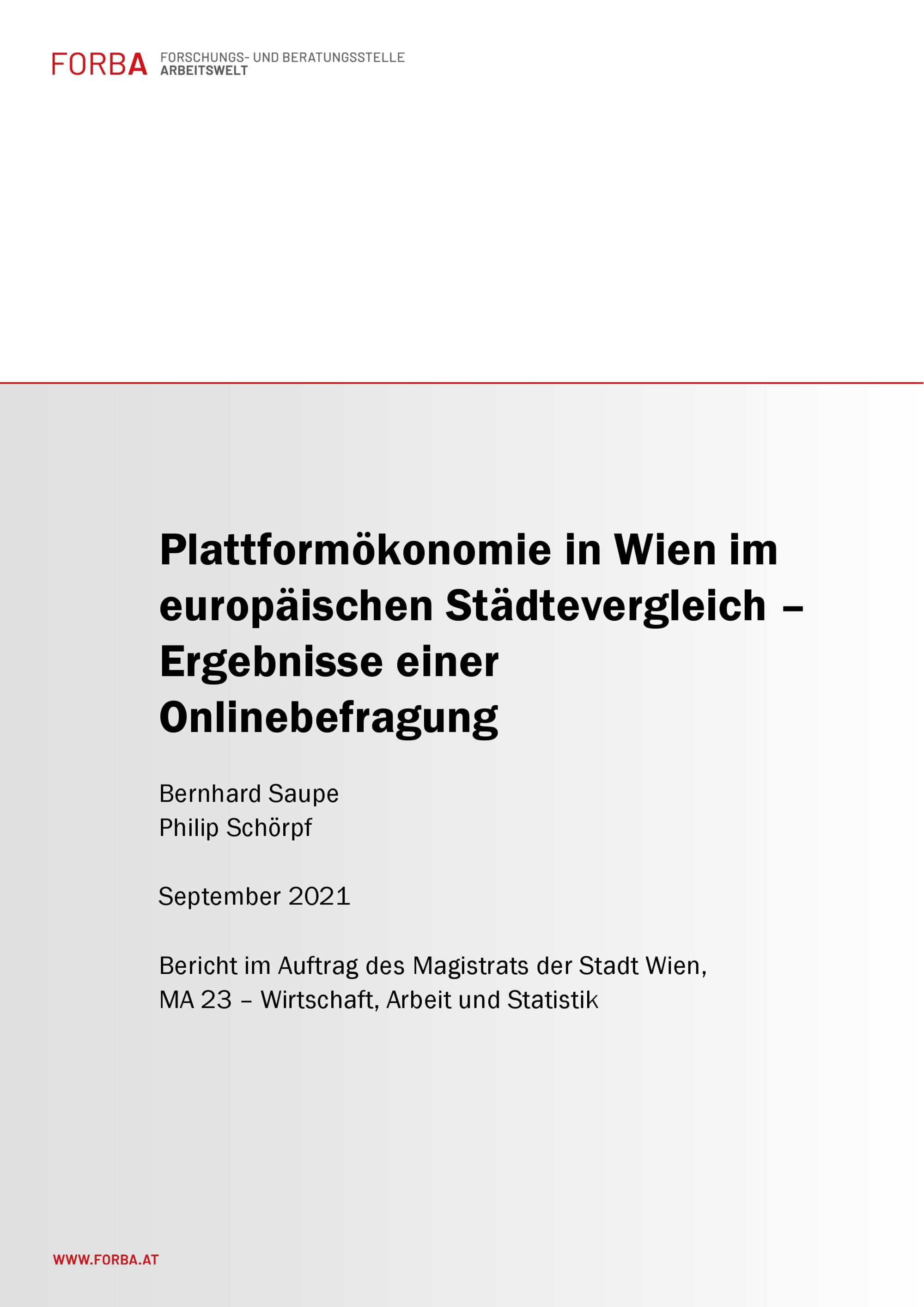 Plattformökonomie in Wien im europäischen Städtevergleich : Ergebnisse einer Onlinebefragung / Bernhard Saupe, Philip Schörpf ; Bericht im Auftrag des Magistrats der Stadt Wien, MA 23 - Wirschaft, Arbeit und Statistik