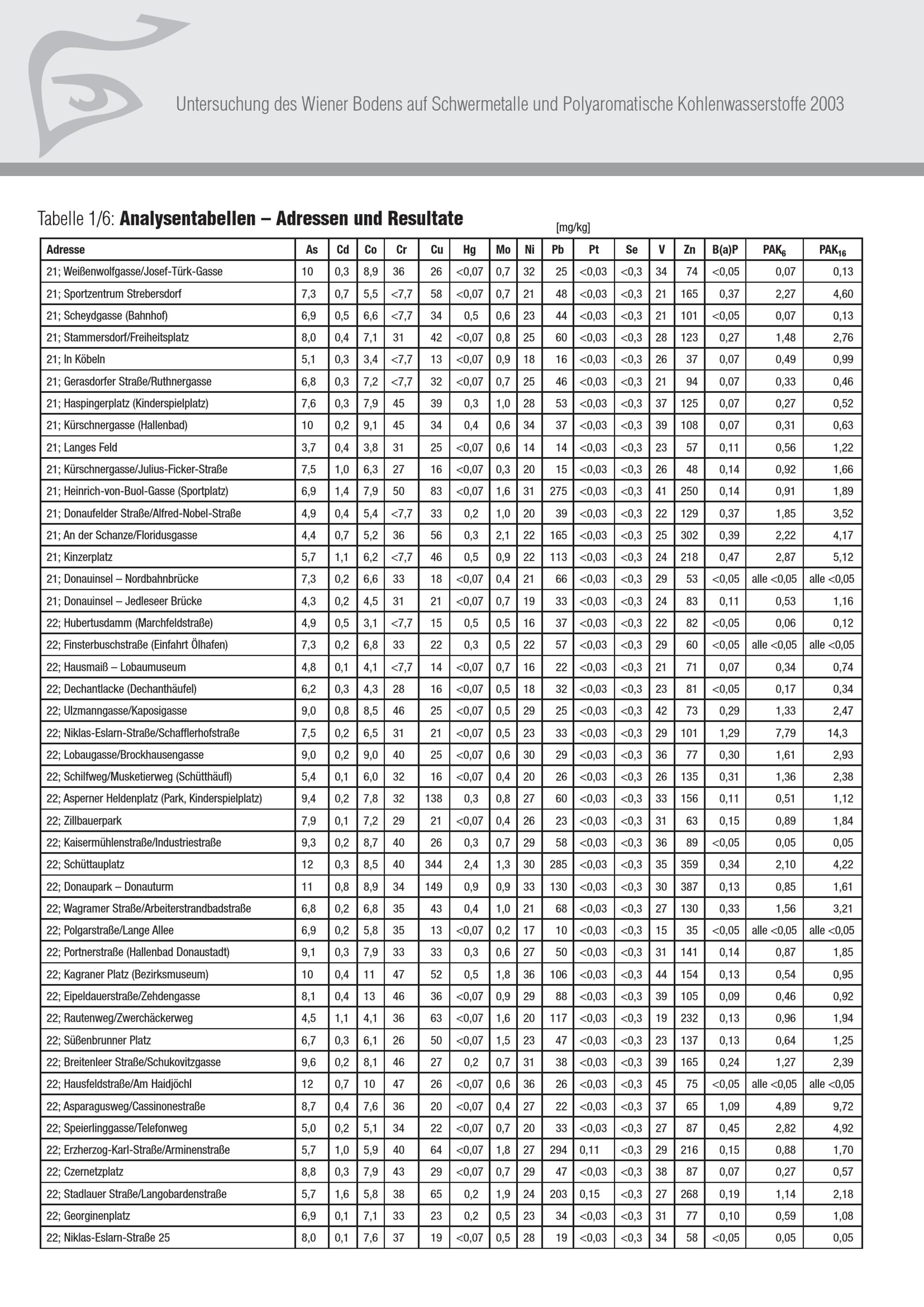 Wiener Bodenbericht 2003 : Untersuchung des Wiener Bodens auf Schwermetalle und polyaromatische Kohlenwasserstoffe / Medieninhaber und Herausgeber: Magistrat der Stadt Wien, MA 22 - Umweltschutz ; Autor: Peter Kreiner