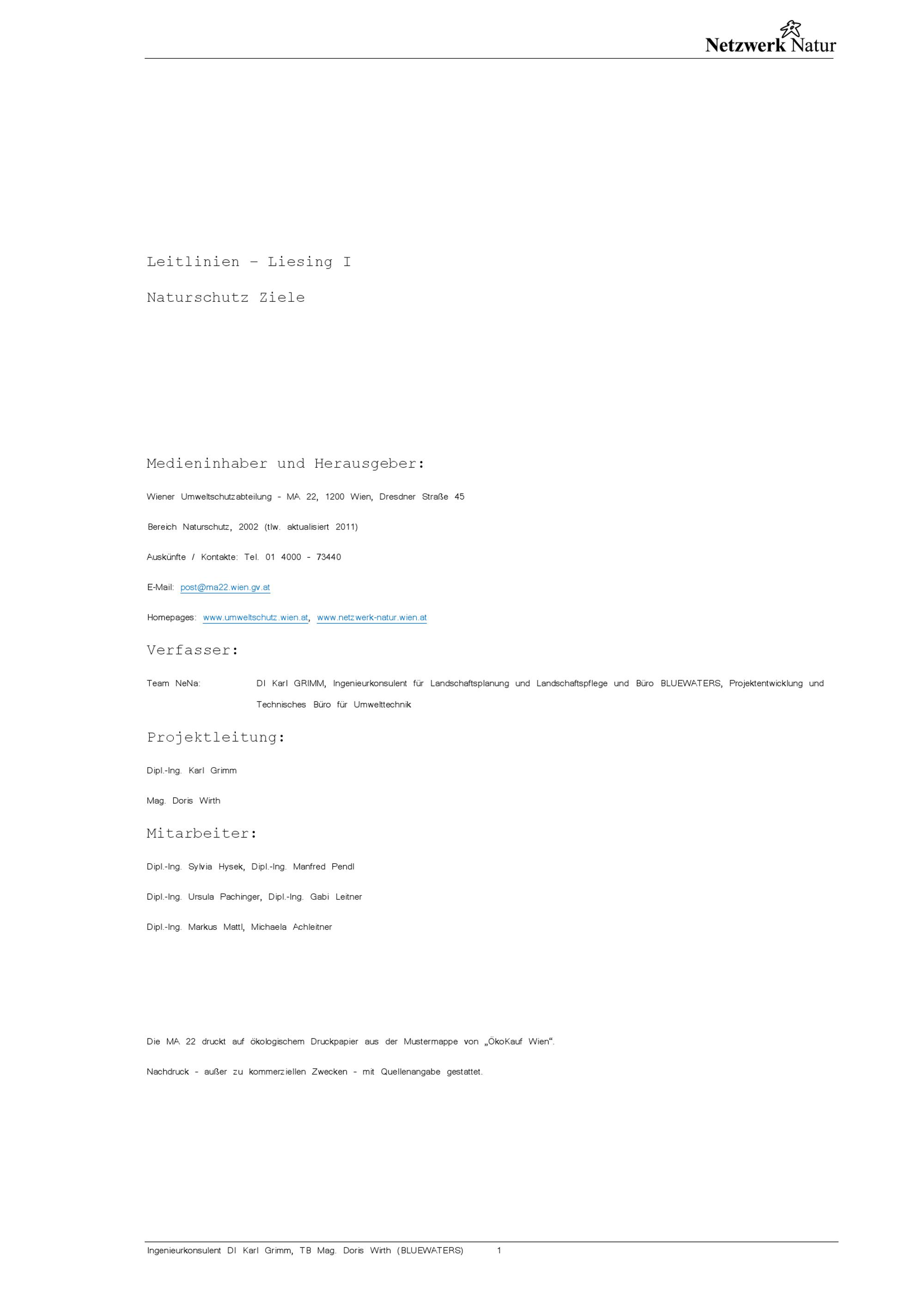 Liesing I Naturschutz_Ziele / Wiener Umweltschutzabteilung - MA 22 ; Projektleitung: Karl Grimm, Doris Wirth / Leitlinien 03_2002