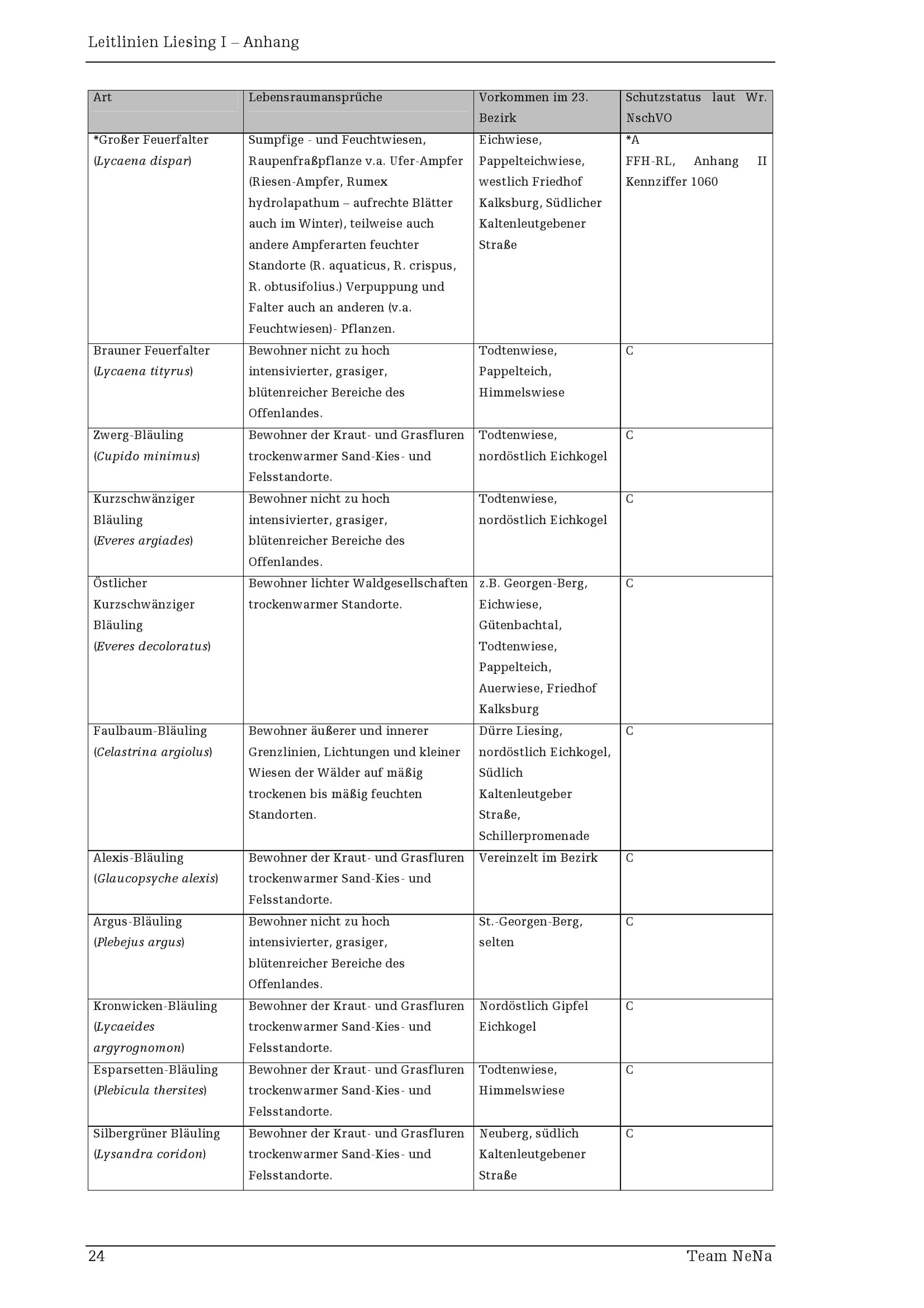 Liesing I Naturschutz_Ziele / Magistratsabteilung 22 - Umweltschutz ; Projektleitung: Karl Grimm, Doris Wirth / Anhang Tier- und Pflanzentabellen