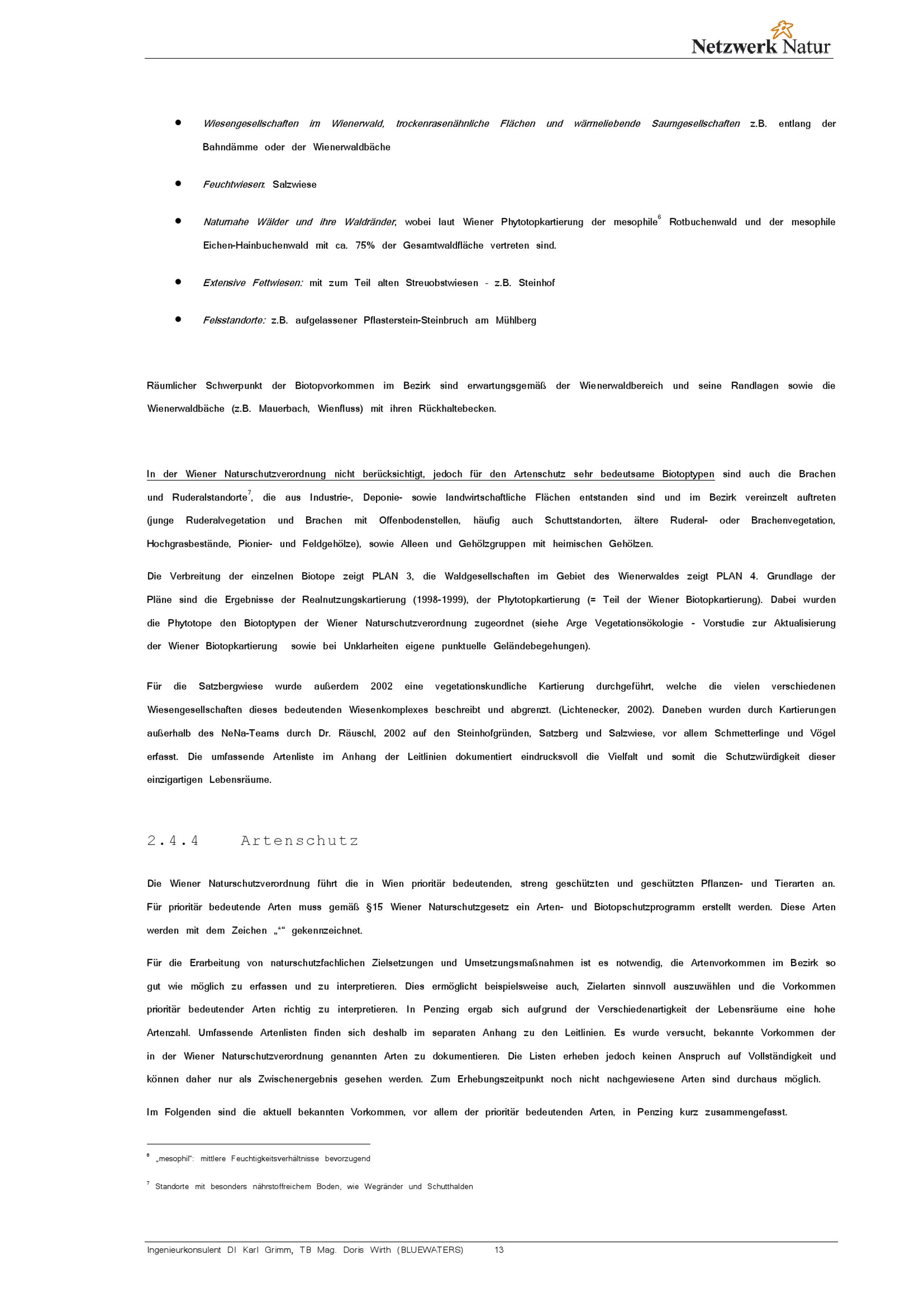 Penzing I Naturschutz_Ziele : Leitlinien 07_2002 / Medieninhaber und Herausgeber: Wiener Umweltschutzabteilung - MA 22 ; Projektleitung: Karl Grimm, Doris Wirth