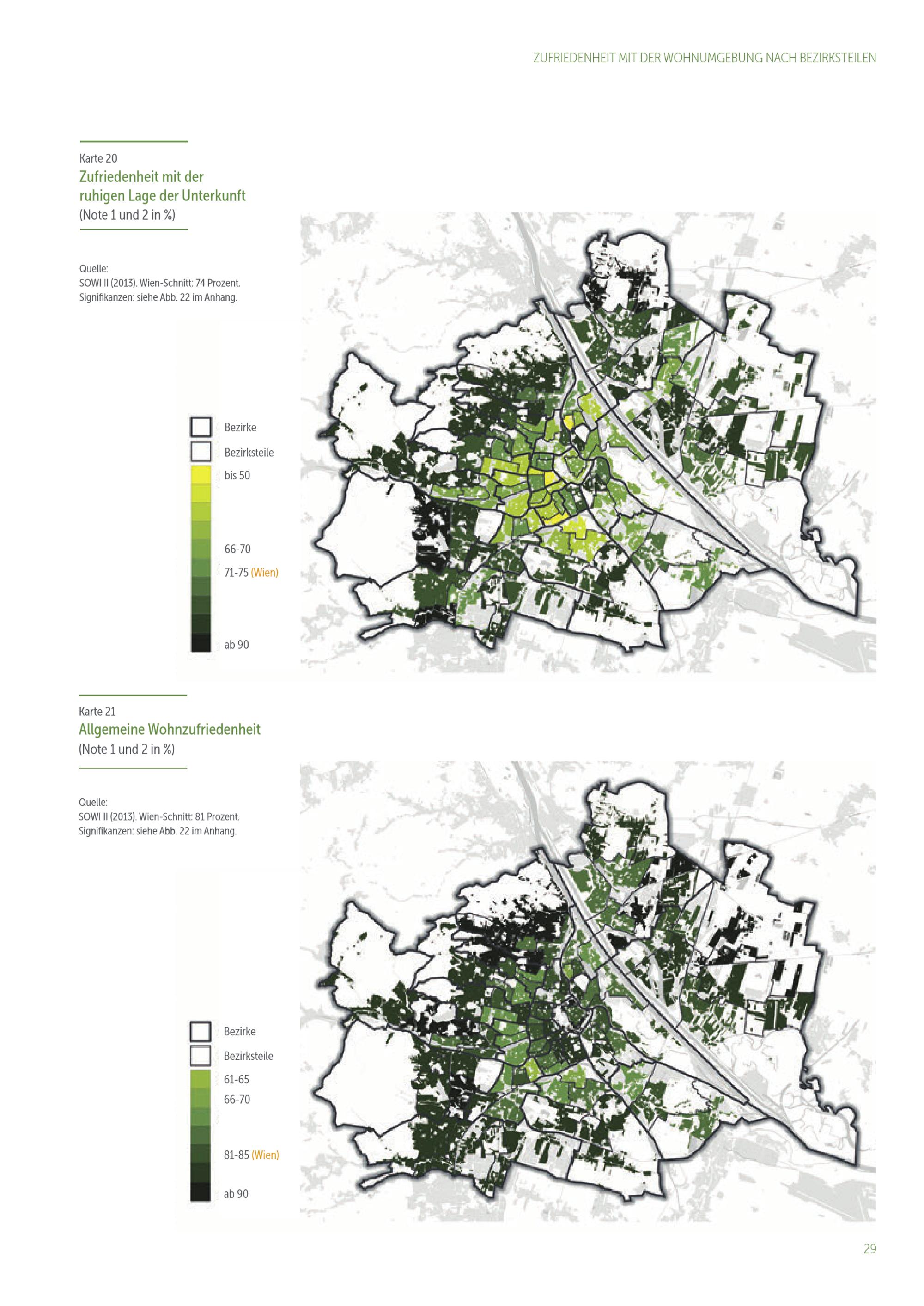 Lebensqualität in 91 Wiener Bezirksteilen : Bezirksprofile der Zufriedenheit mit der Wohnumgebung / Eigentümer und Herausgeber: Stadtentwicklung Wien, Magistratsabteilung 18 - Stadtentwicklung und Stadtplanung ; Datenanalysen, Karten, Text: Tobias Troger, MA, Ing. Mag. Johannes Gielge (MA 18 - Stadtforschung und Raumanalyse) ; Datenerhebung im Auftrag der Universität Wien: Institut für Empirische Sozialforschung (IFES) ; Projektleitung: Dr. Gert Feistritzer