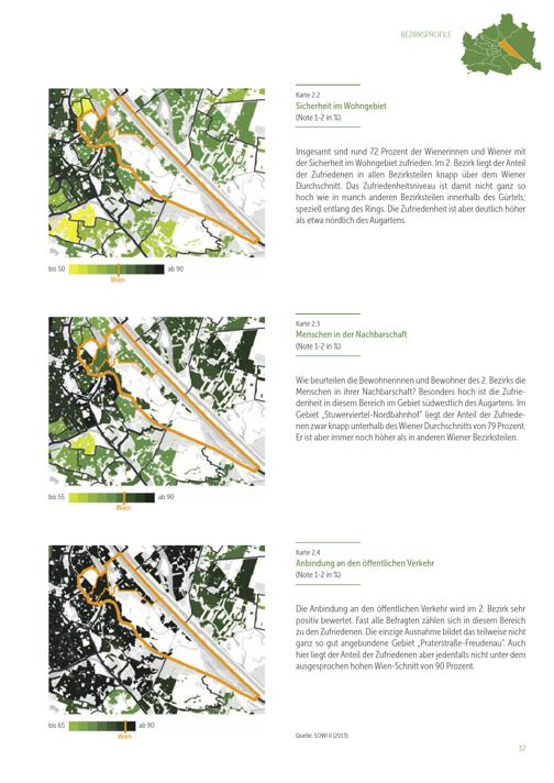 Lebensqualität in 91 Wiener Bezirksteilen : Bezirksprofile der Zufriedenheit mit der Wohnumgebung / Eigentümer und Herausgeber: Stadtentwicklung Wien, Magistratsabteilung 18 - Stadtentwicklung und Stadtplanung ; Datenanalysen, Karten, Text: Tobias Troger, MA, Ing. Mag. Johannes Gielge (MA 18 - Stadtforschung und Raumanalyse) ; Datenerhebung im Auftrag der Universität Wien: Institut für Empirische Sozialforschung (IFES) ; Projektleitung: Dr. Gert Feistritzer
