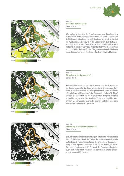 Lebensqualität in 91 Wiener Bezirksteilen : Bezirksprofile der Zufriedenheit mit der Wohnumgebung / Eigentümer und Herausgeber: Stadtentwicklung Wien, Magistratsabteilung 18 - Stadtentwicklung und Stadtplanung ; Datenanalysen, Karten, Text: Tobias Troger, MA, Ing. Mag. Johannes Gielge (MA 18 - Stadtforschung und Raumanalyse) ; Datenerhebung im Auftrag der Universität Wien: Institut für Empirische Sozialforschung (IFES) ; Projektleitung: Dr. Gert Feistritzer