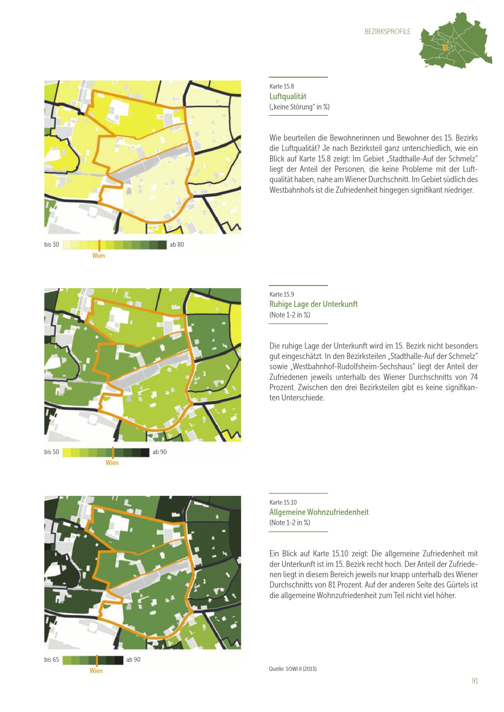 Lebensqualität in 91 Wiener Bezirksteilen : Bezirksprofile der Zufriedenheit mit der Wohnumgebung / Eigentümer und Herausgeber: Stadtentwicklung Wien, Magistratsabteilung 18 - Stadtentwicklung und Stadtplanung ; Datenanalysen, Karten, Text: Tobias Troger, MA, Ing. Mag. Johannes Gielge (MA 18 - Stadtforschung und Raumanalyse) ; Datenerhebung im Auftrag der Universität Wien: Institut für Empirische Sozialforschung (IFES) ; Projektleitung: Dr. Gert Feistritzer