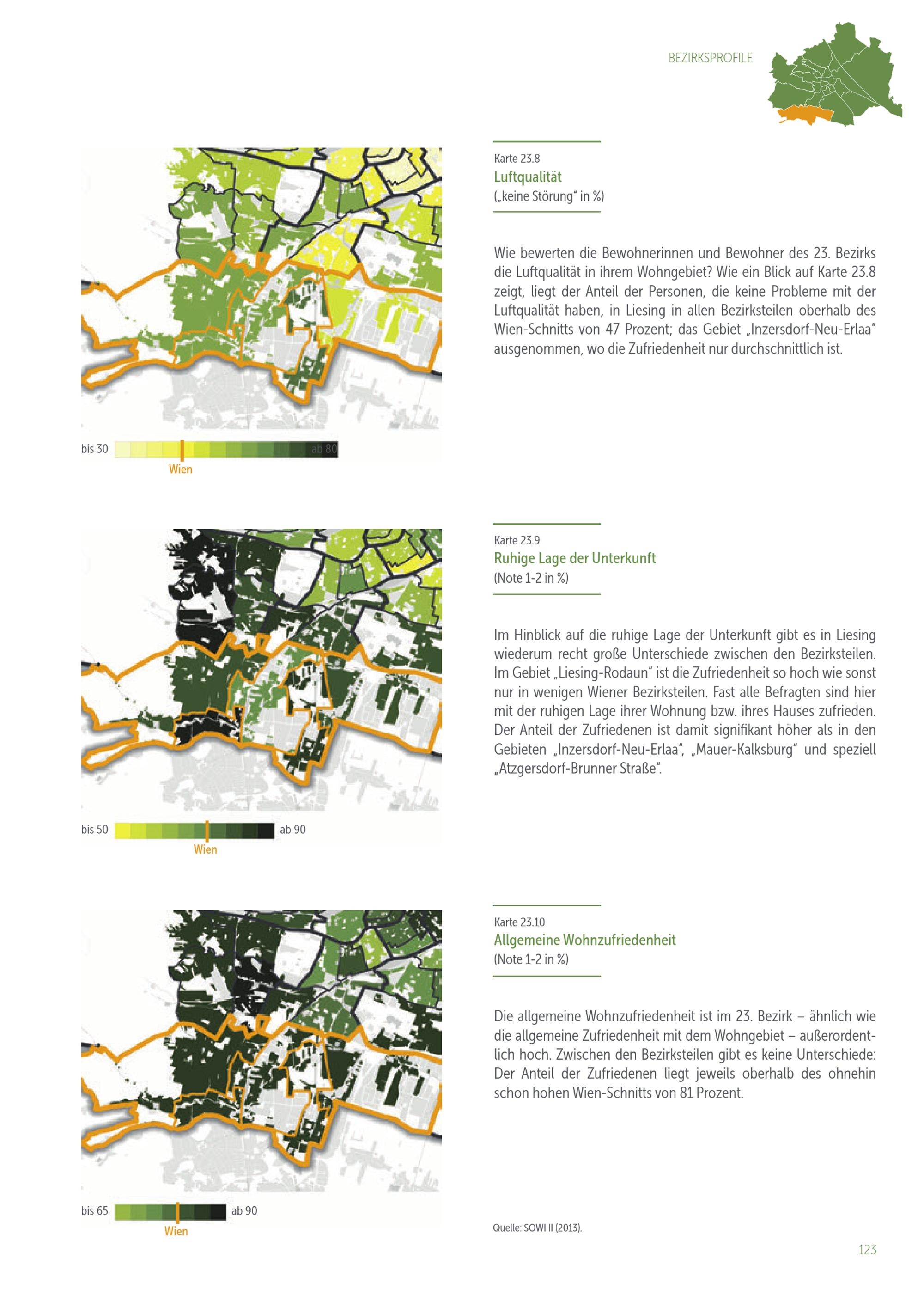 Lebensqualität in 91 Wiener Bezirksteilen : Bezirksprofile der Zufriedenheit mit der Wohnumgebung / Eigentümer und Herausgeber: Stadtentwicklung Wien, Magistratsabteilung 18 - Stadtentwicklung und Stadtplanung ; Datenanalysen, Karten, Text: Tobias Troger, MA, Ing. Mag. Johannes Gielge (MA 18 - Stadtforschung und Raumanalyse) ; Datenerhebung im Auftrag der Universität Wien: Institut für Empirische Sozialforschung (IFES) ; Projektleitung: Dr. Gert Feistritzer