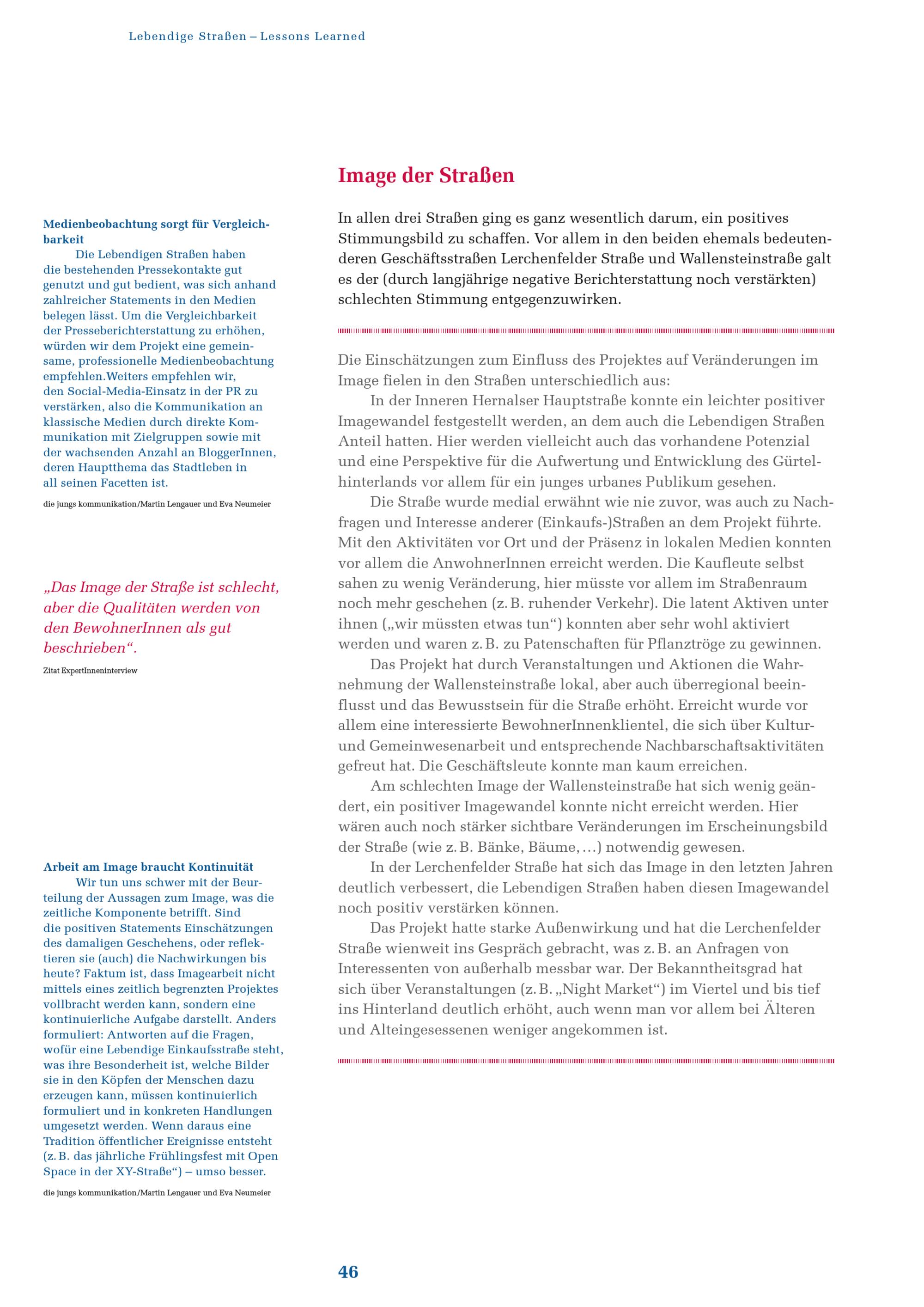 Lebendige Straßen - lessons learned : Einschätzungen und Erfahrungen aus dem Projekt Lebendige Straßen / Herausgeberin Stadtentwicklung Wien, Magistratsabteilung 18 - Stadtentwicklung und Stadtplanung ; Autor: Thomas Meindl ; in Zusammenarbeit mit Anita Frank [und 2 weiteren]