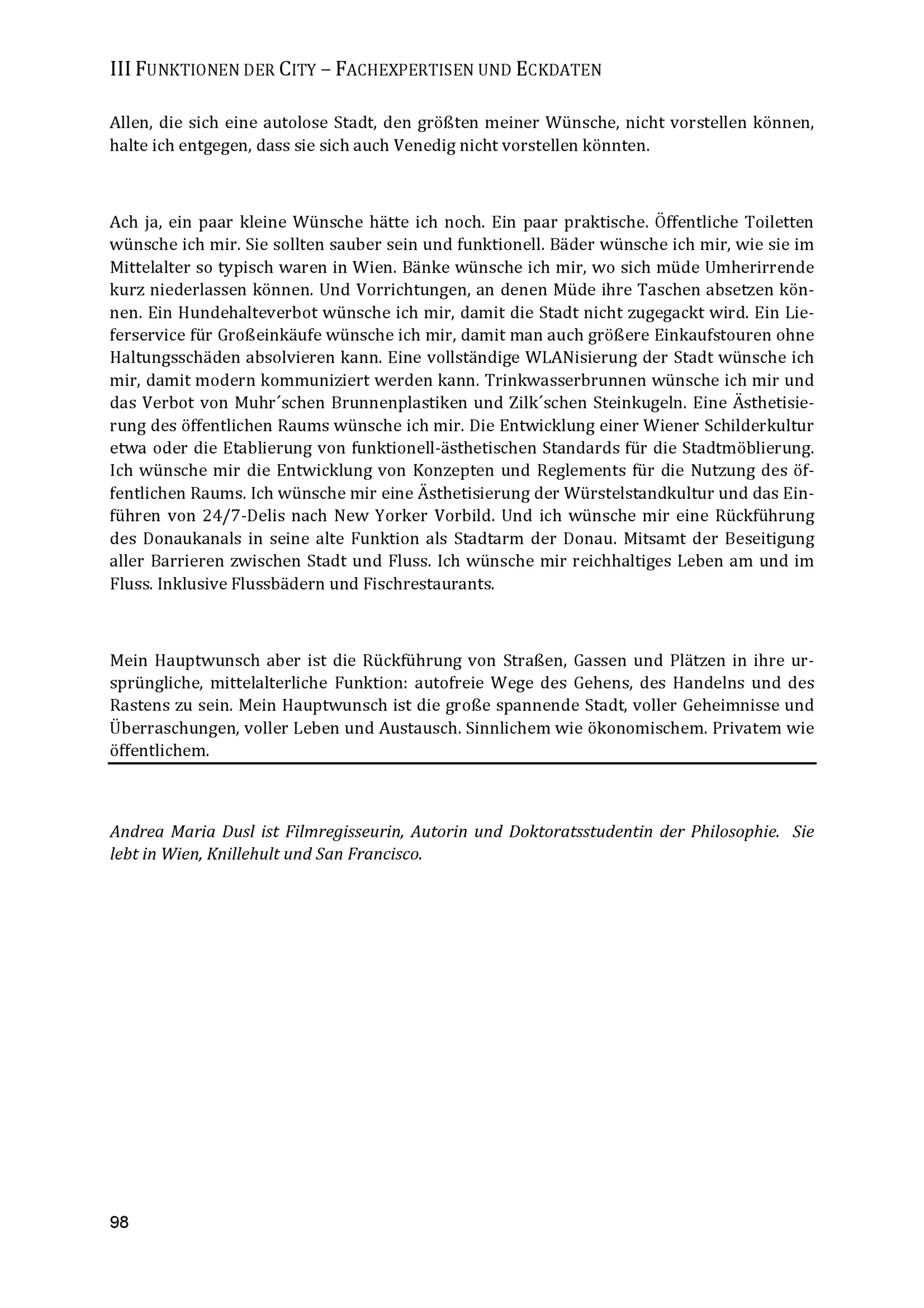 Zielgebiet City : Planung, Prozess, Leitbild 2020 / EigentümerInnen und HerausgeberInnen: Institut für Geographie und Regionalforschung, Universität Wien, Stadt Wien, Magistratsabteilung 18 - Stadtentwicklung und Stadtplanung, Stadt Wien, Magistratsabteilung 19 - Architektur und Stadtgestaltung ; für den Inhalt verantwortlich: Gerhard Hatz, Andrea Kreppenhofer