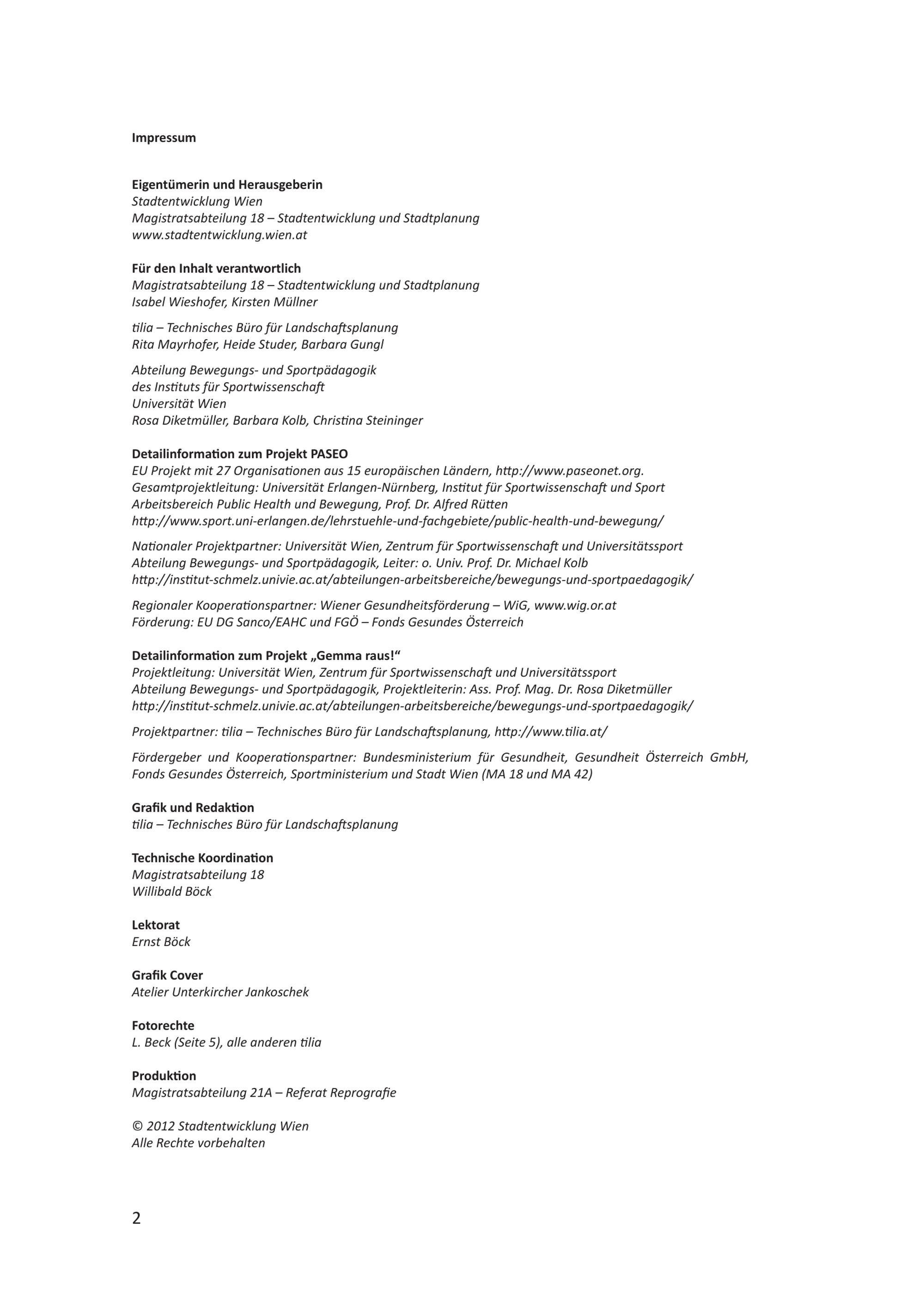 Altern in Bewegung : Gesundheitsförderung durch Bewegung im öffentlichen Raum in Wien / Stadtentwicklung Wien, Magistratsabteilung 18 - Stadtentwicklung und Stadtplanung ; für den Inhalt verantwortlich: Isabel Wieshofer [und 7 weitere]