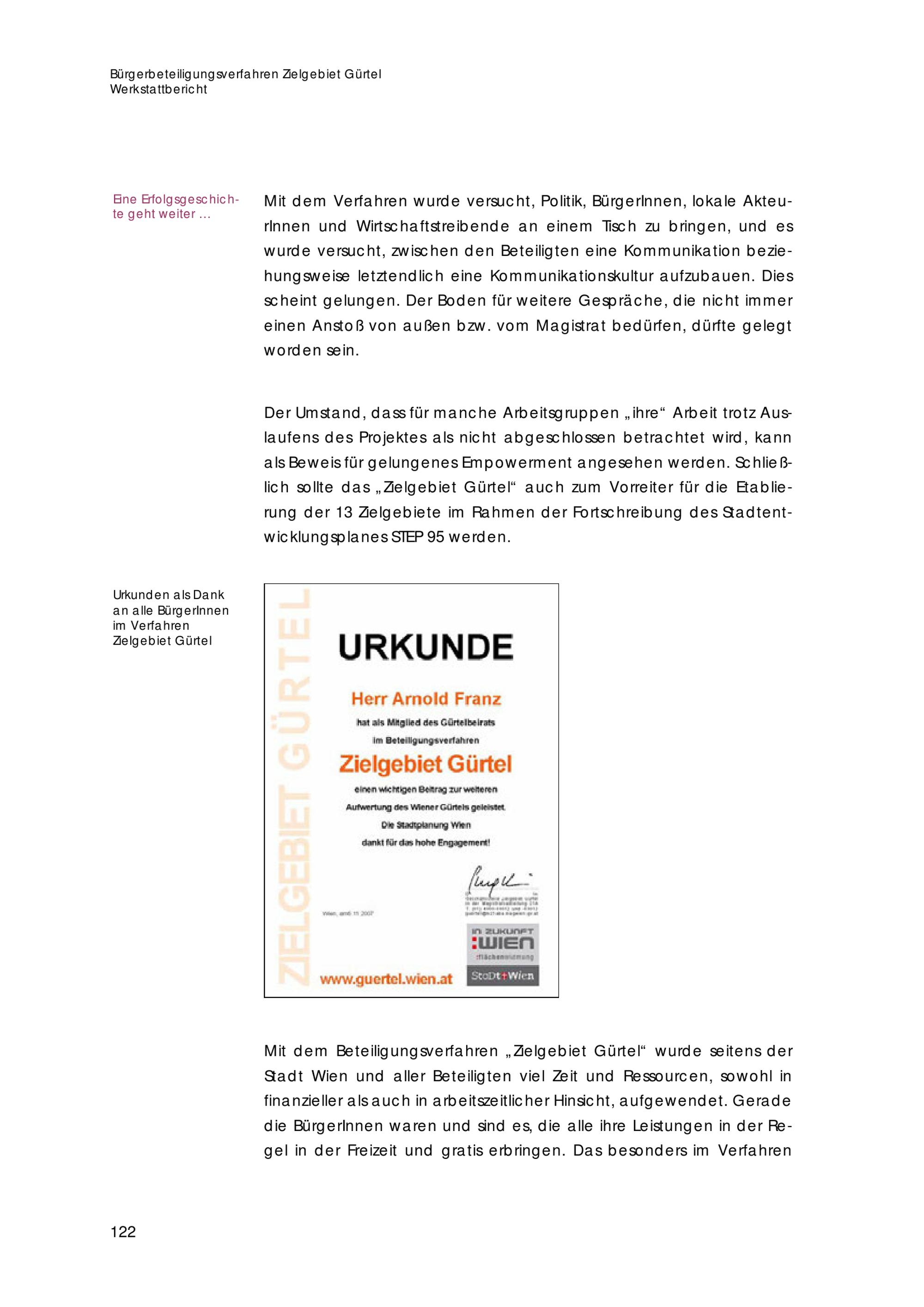 Zielgebiet Gürtel : Wiens größtes Bürgerbeteiligungsverfahren 2002-2007 : die Verwirklichung der Projekte 2007-2010 / Bericht im Auftrag der Magistratsabteilung 21A / Zielgebietskoordination ; Andreas Käfer, Veronika Gstir ; Herausgeberin: Magistratsabteilung 18 - Stadtentwicklung und Stadtplanung