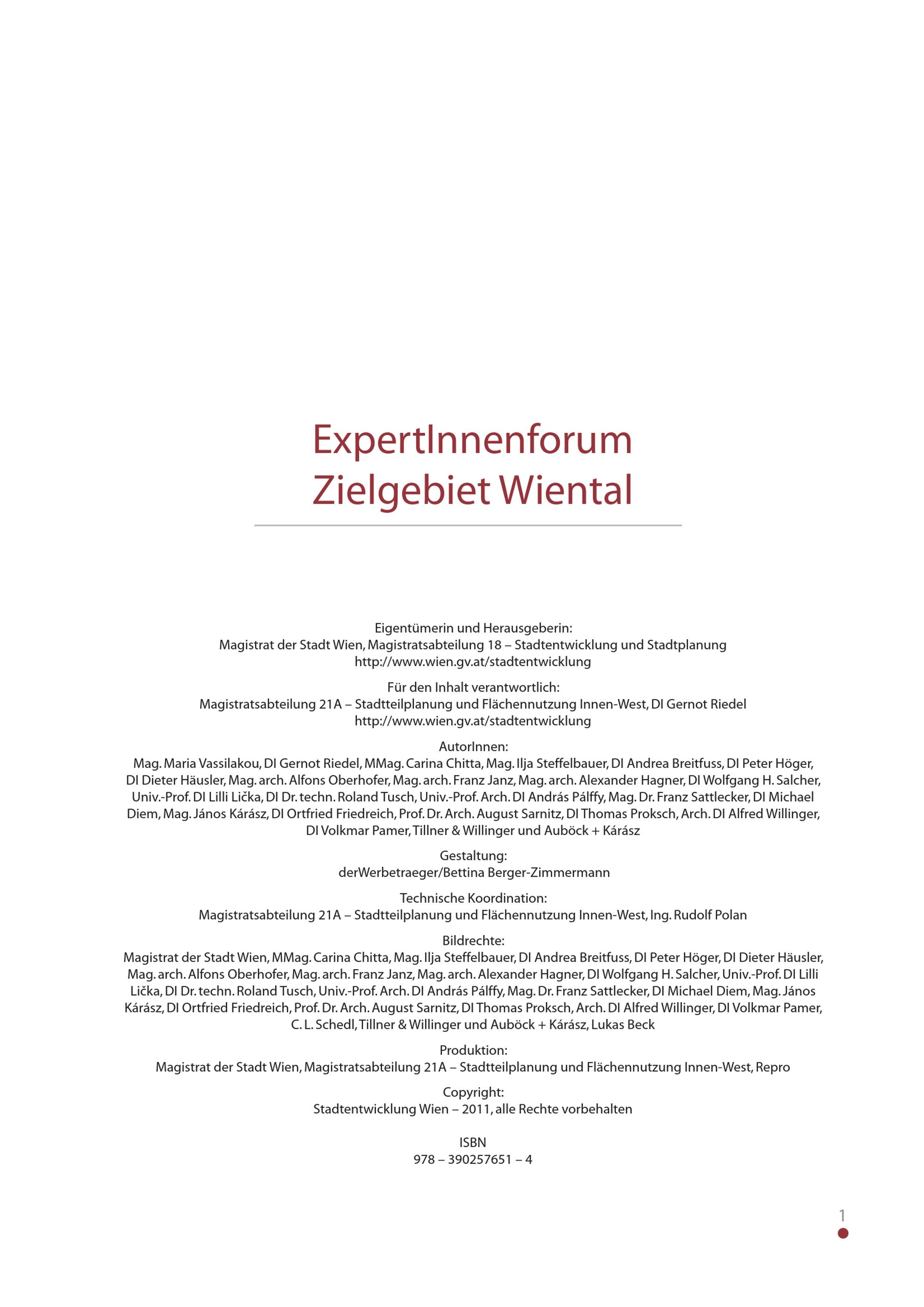 ExpertInnenforum Zielgebiet Wiental / Eigentümerin und Herausgeberin: Magistrat der Stadt Wien, Magistratsabteilung 18 – Stadtentwicklung und Stadtplanung ; für den Inhalt verantwortlich: Magistratsabteilung 21A - Stadtteilplanung und Flächennutzung Innen-West ; AutorInnen: Maria Vassilakou [und 21 weitere]