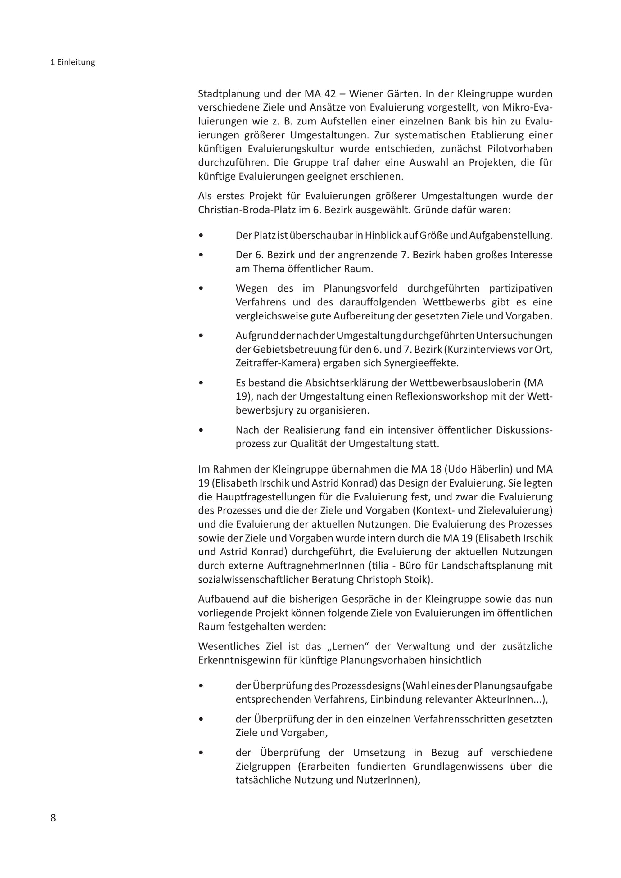 Christian-Broda-Platz: Prozess - AkteurInnen - Nutzung : Evaluierung einer Platzgestaltung / Herausgeber: Stadtentwicklung Wien - Magistratsabteilung 18, Stadtentwicklung und Stadtplanung ; Für den Inhalt verantwortlich: Elisabeth Irschik [und 6 weitere]
