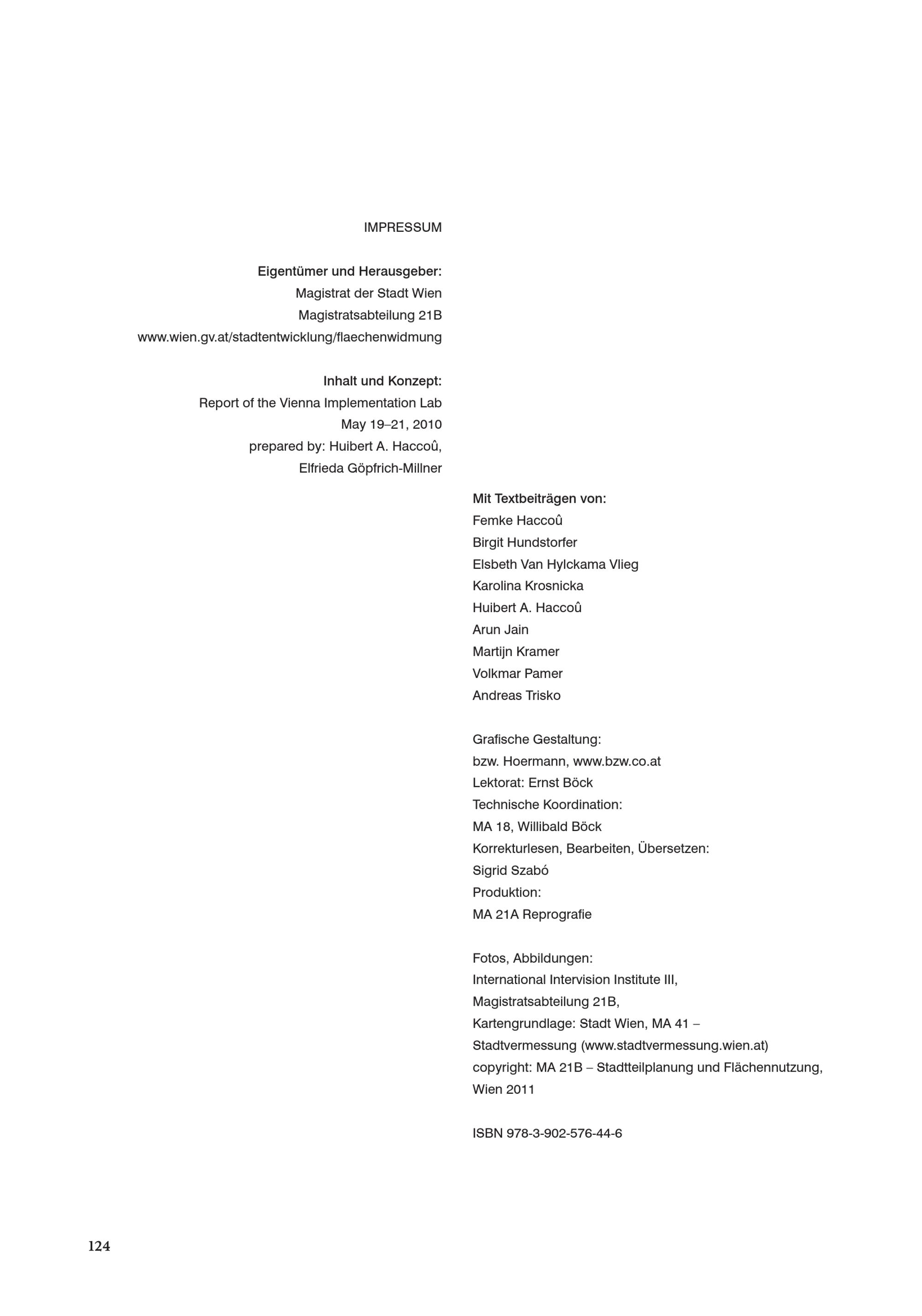Report of the Vienna Implementation Lab - Kagran Centre : 19 - 21 May 2010, Vienna, Austria / Herausgeber: Magistrat der Stadt Wien, Magistratsabteilung 21B ; Prepared by: Huibert A. Haccoû ; Mit Textbeiträgen von: Femke Haccoû [und 8 weitere]