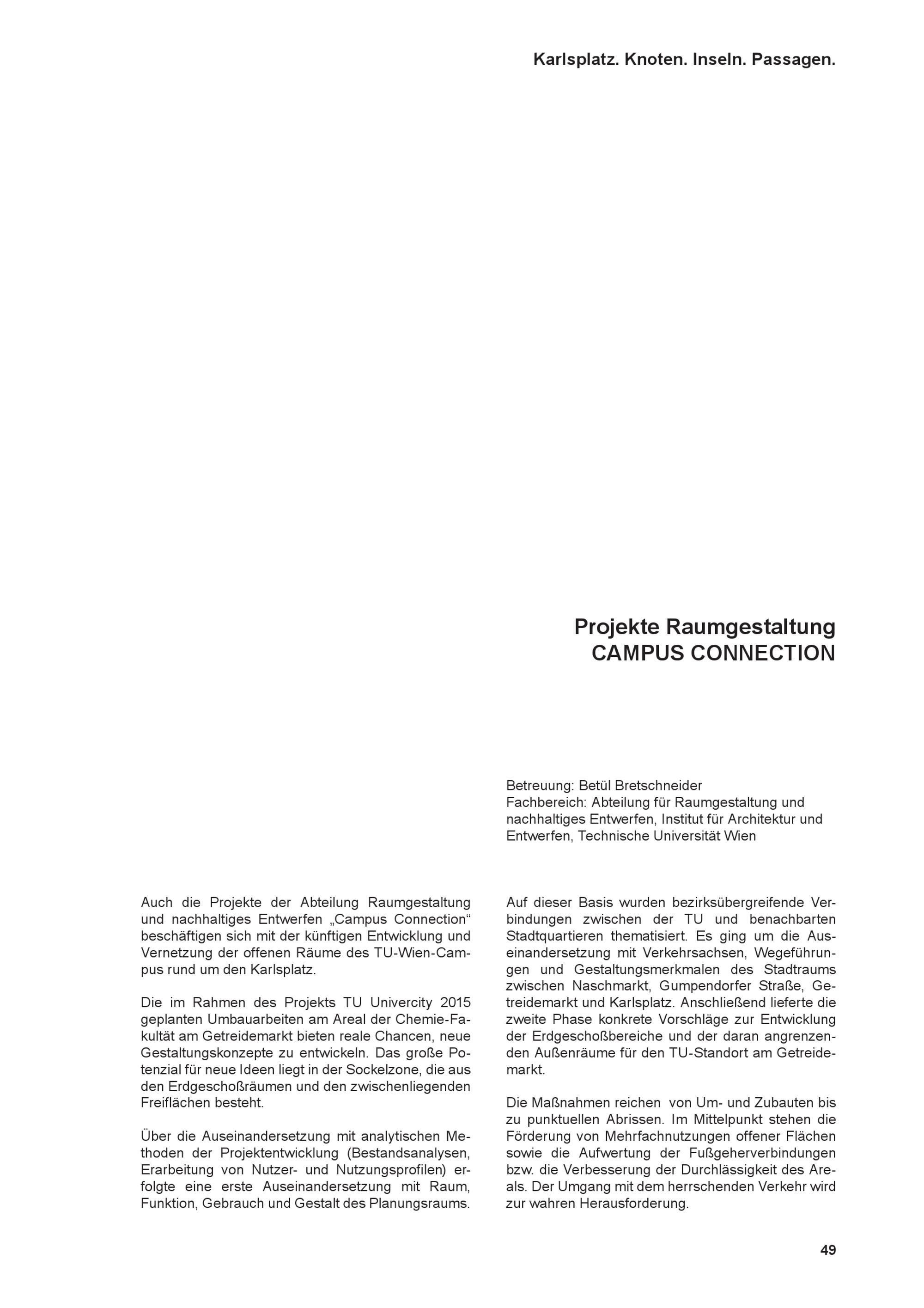 Karlsplatz. Knoten. Inseln. Passagen / Herausgeber: Stadt Wien, Magistratsabteilung 18 - Stadtentwicklung und Stadtplanung ; AutorInnen: Markus Tomaselli [und 40 weitere] ; Redaktion & Layout: Brigitte Pollak