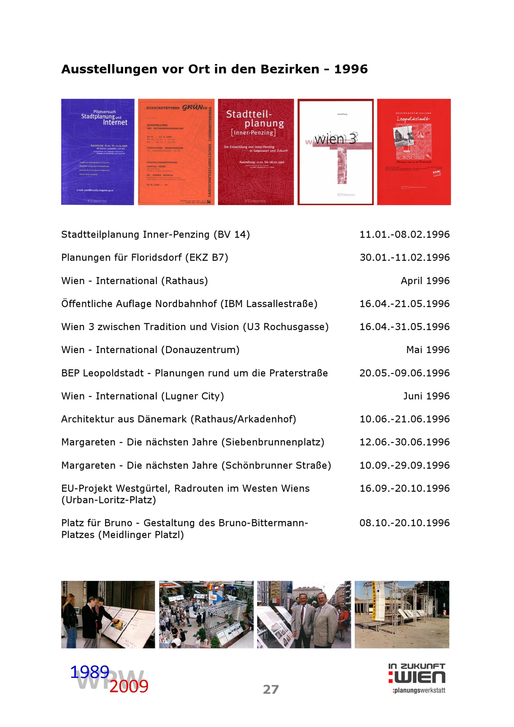 Ausstellungszentrum der Wiener Stadtentwicklung : ein Gesamtbericht zur Öffentlichkeitsarbeit von 1989 bis 2009 ; In Zukunft Wien, Planungswerkstatt / Magistrat der Stadt Wien, MA 18 - Stadtentwicklung und Stadtplanung ; Planungswerkstatt ; Idee, Konzeption und Gestaltung: Richard Macho