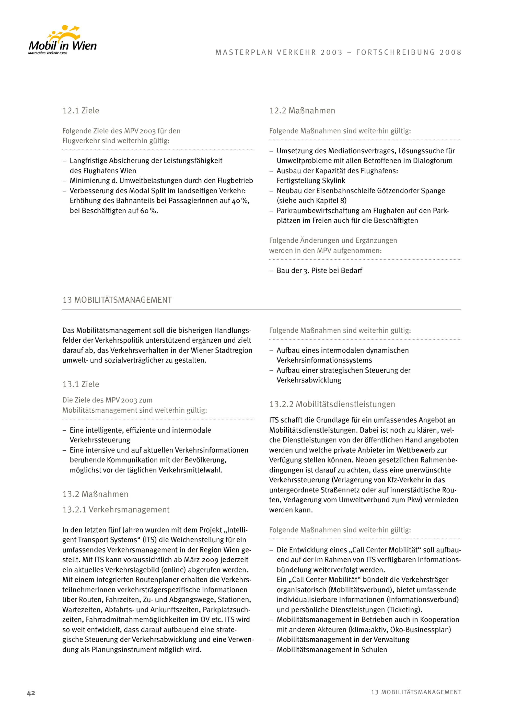 Masterplan Verkehr 2003 : Evaluierung und Fortschreibung 2008 ; die Evaluierung und Fortschreibung des Masterplan Verkehr 2003 wurde am 19. Dezember 2008 von Wiener Gemeinderat beschlossen ; Mobil in Wien, Masterplan Verkehr 03/08 / Herausgeber: Magistratsabteilung 18 - Stadtentwicklung und Stadtplanung ; Projektleitung: Dieter Häusler ; Auftragnehmerteam: Rosinak & Partner ZT GmbH [und 3 weitere]