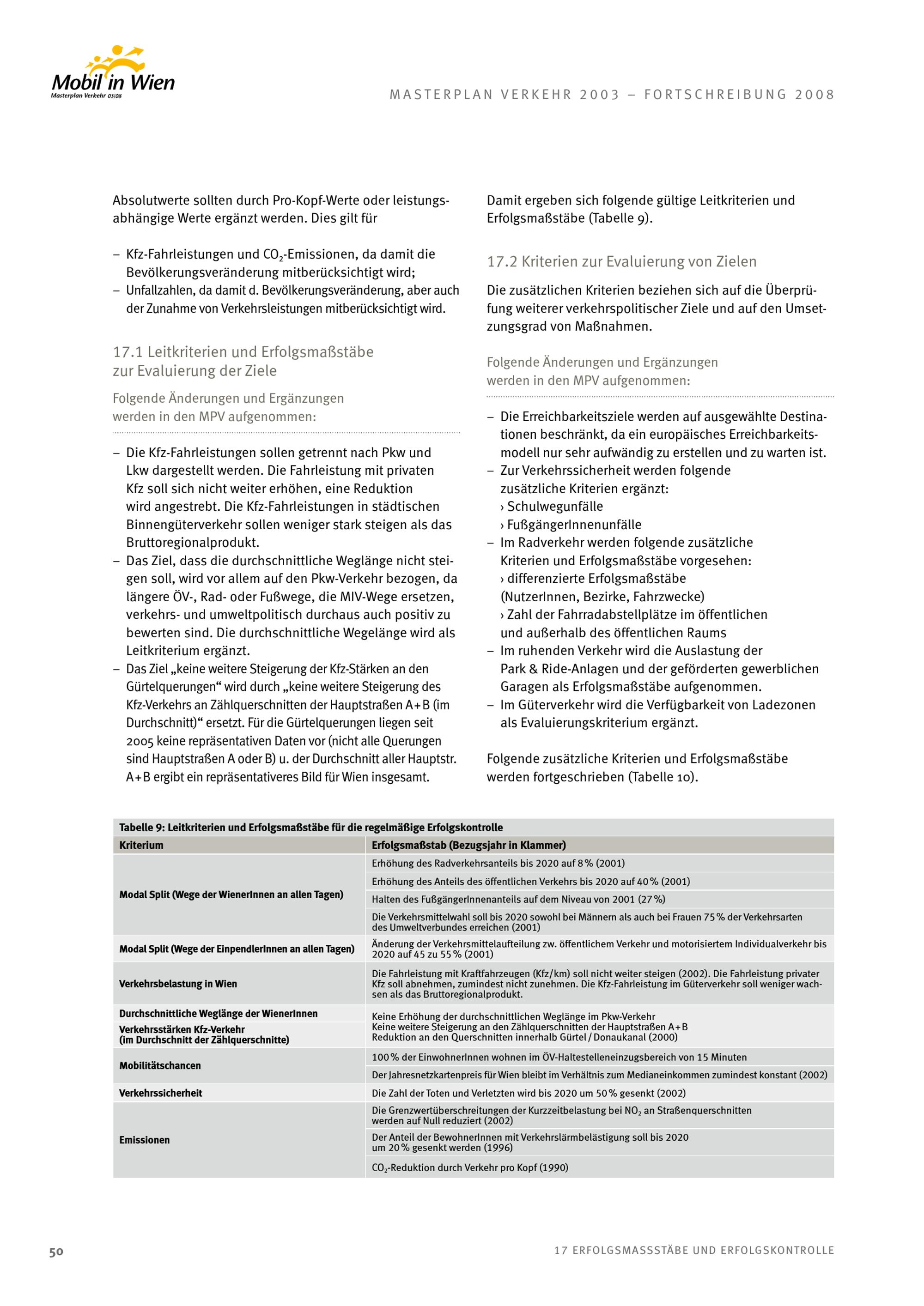 Masterplan Verkehr 2003 : Evaluierung und Fortschreibung 2008 ; die Evaluierung und Fortschreibung des Masterplan Verkehr 2003 wurde am 19. Dezember 2008 von Wiener Gemeinderat beschlossen ; Mobil in Wien, Masterplan Verkehr 03/08 / Herausgeber: Magistratsabteilung 18 - Stadtentwicklung und Stadtplanung ; Projektleitung: Dieter Häusler ; Auftragnehmerteam: Rosinak & Partner ZT GmbH [und 3 weitere]