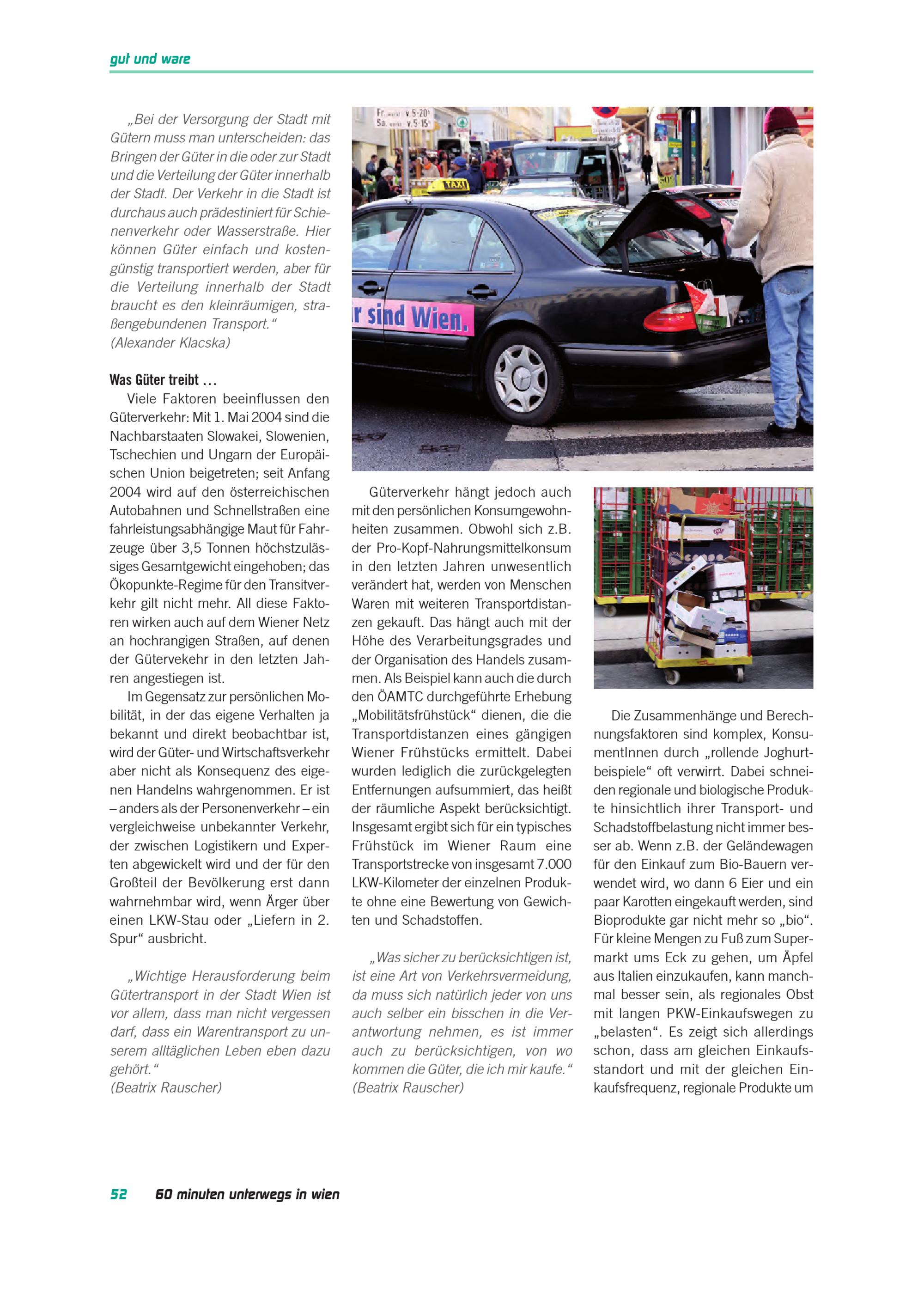 60 Minuten unterwegs in Wien : Gegenwart und Zukunft der Mobilität ; Werkstattbericht Nr. 90 anlässlich der Ausstellung in der Wiener Planungswerkstatt, 22. Jänner bis 18. April 2008 / Herausgeber: Magistratsabteilung 18 - Stadtentwicklung und Stadtplanung ; Textbeiträge: Hannes Loimer [und 8 weitere] ; Konzeption, inhaltliche Bearbeitung: Hanna Posch [und 3 weitere]