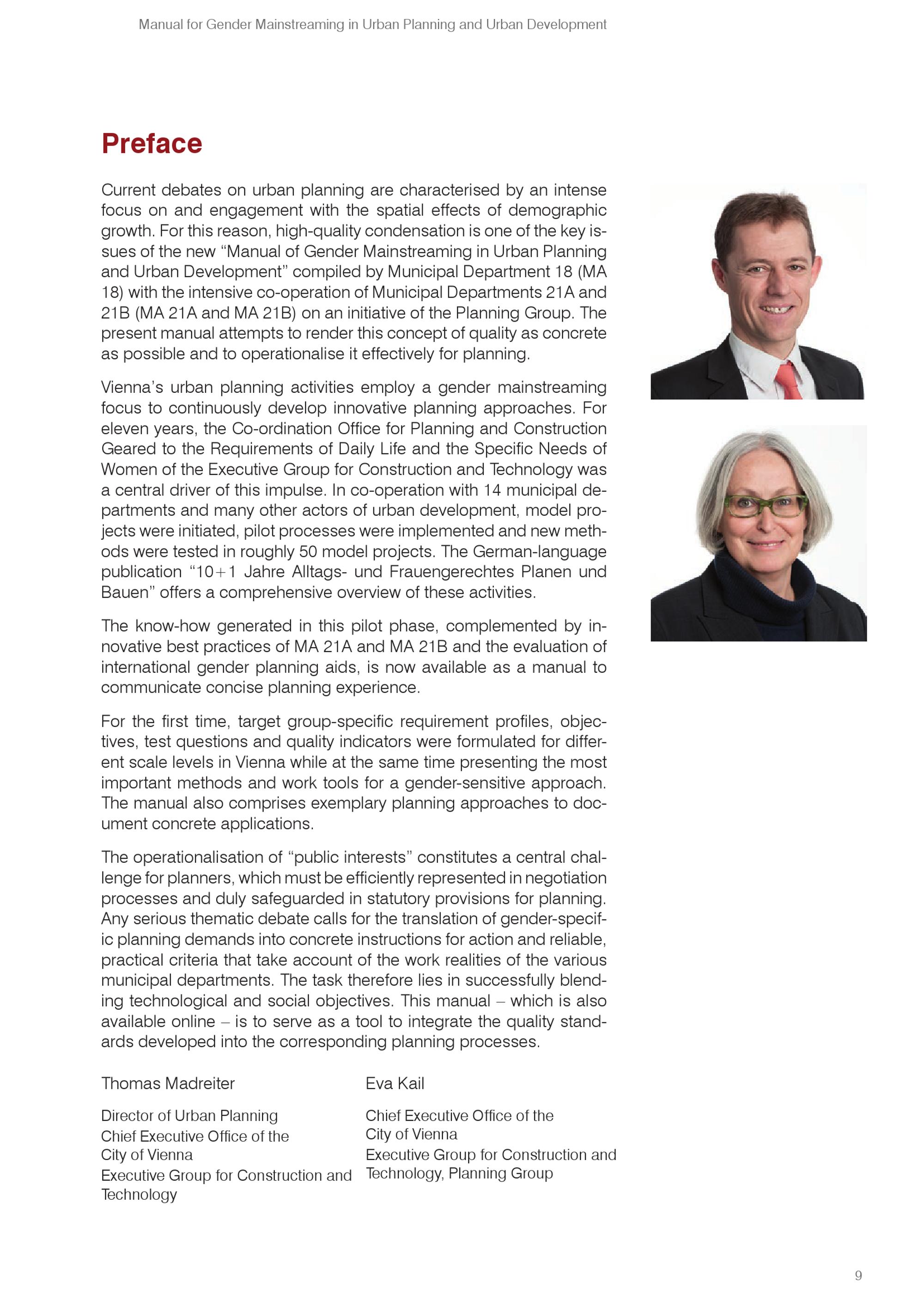 Gender mainstreaming in urban planning and urban development / owner and publisher urban development Vienna, Municipal Department 18 (MA 18) – Urban Development and Planning ; Project co-ordination; Astrid Klimmer-Pölleritzer, Andreas Nuss