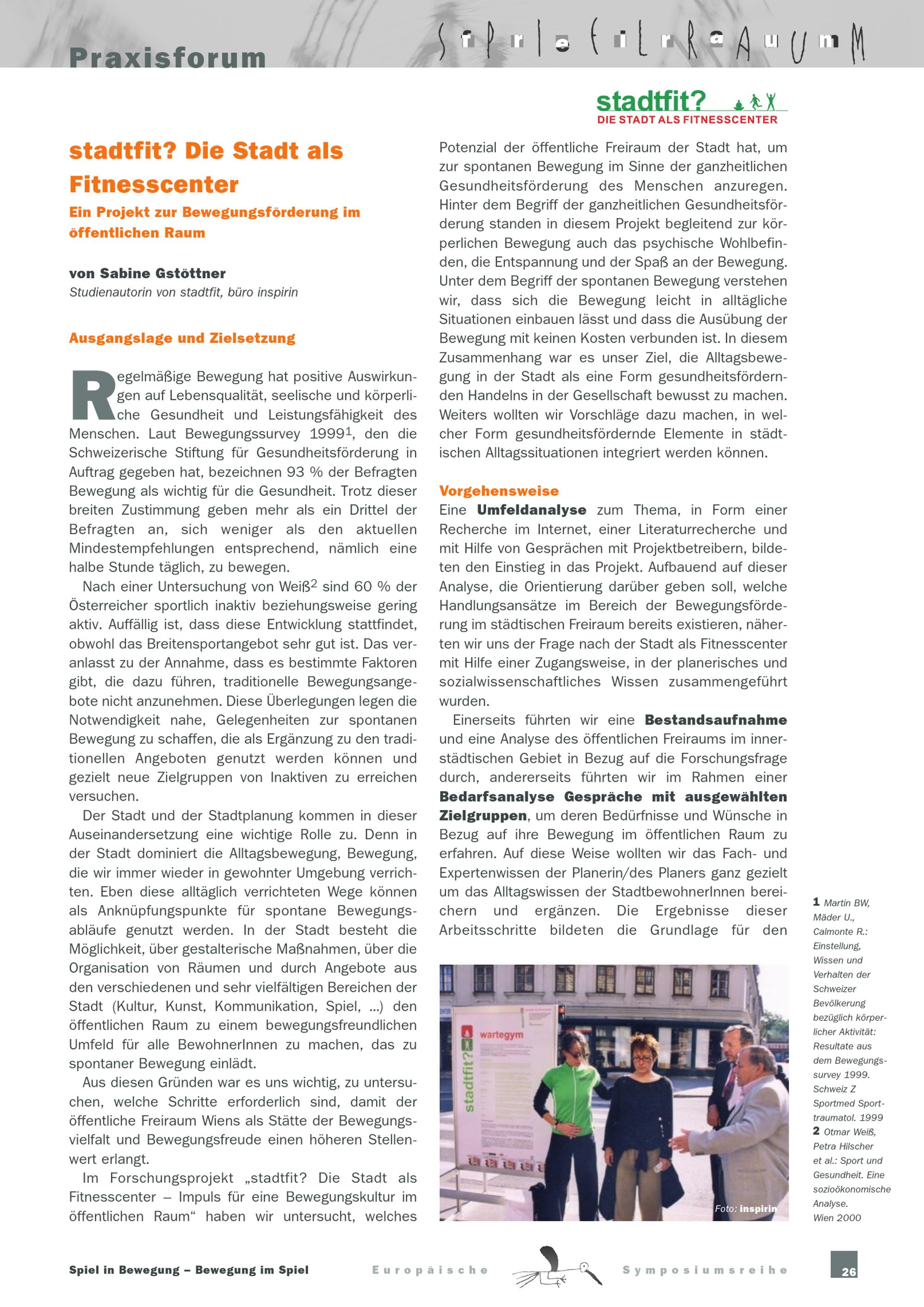 Spiel in Bewegung - Bewegung im Spiel : 3. und 4. Juni 2004 ; Wiener Prater, Riesenrad, Kaisergarten und Planetarium ; [Spielraumsymposium 2004] / Herausgeber: Magistratsabteilung 18 - Stadtplanung und Stadtentwicklung ; Inhaltliche Bearbeitung: Andreas Kupfer