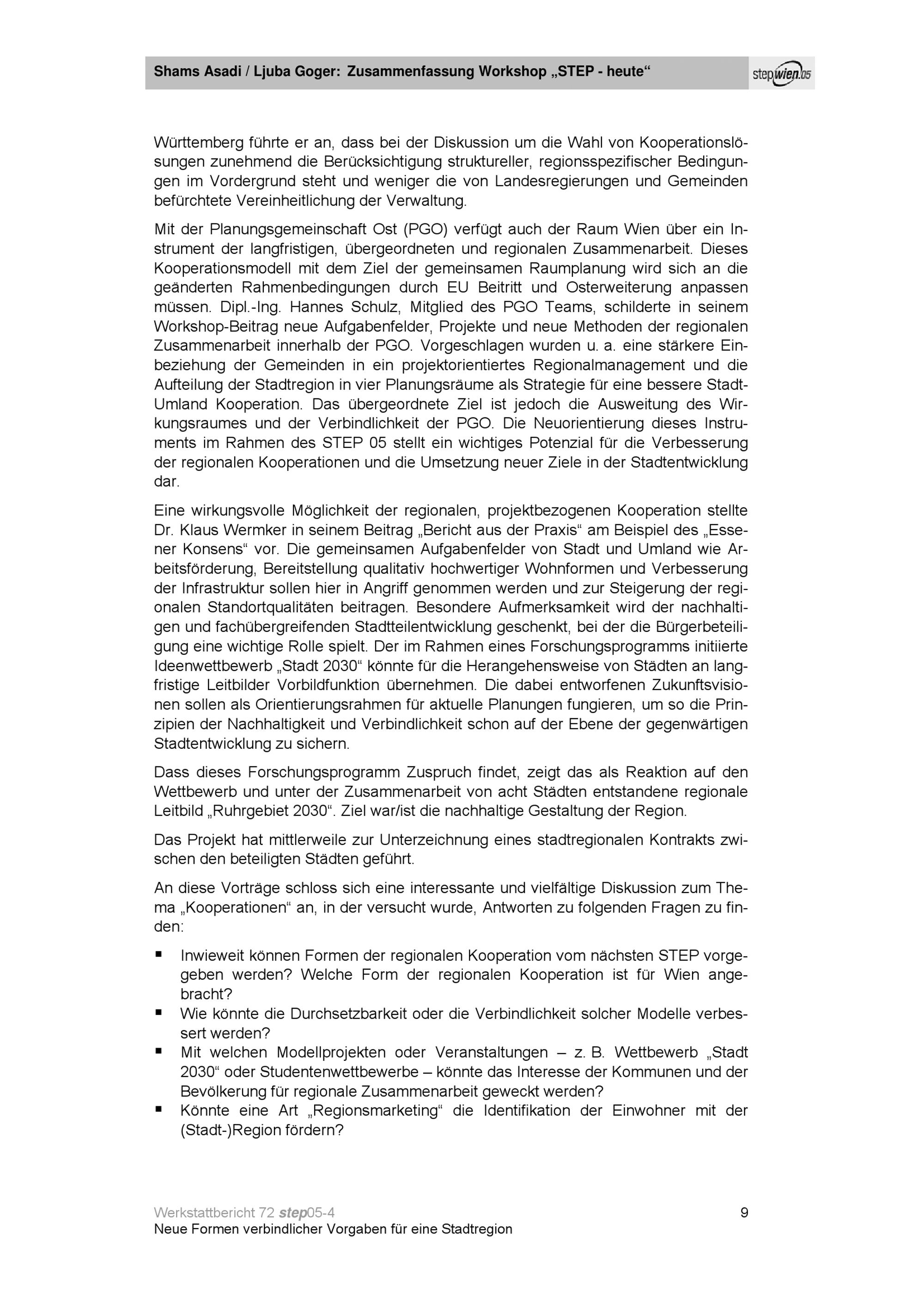 Stadtregionen - Steuerungsmöglichkeiten für die räumliche Entwicklung : Dokumentation der STEP-Workshops ; Start-Workshop 18. Juni 2002: "Neue Formen verbindlicher Vorgaben für eine Stadtregion" ; Workshop "STEP - heute" 13. Dezember 2002: "Veränderungen in der Stadtentwicklungsplanung und Möglichkeiten stadtregionaler Kooperationen" / Herausgeber: Magistratsabteilung 18 - Stadtentwicklung und Stadtplanung ; Redaktionelle Bearbeitung, Layout: Tanja Hanzl [und 2 weitere]