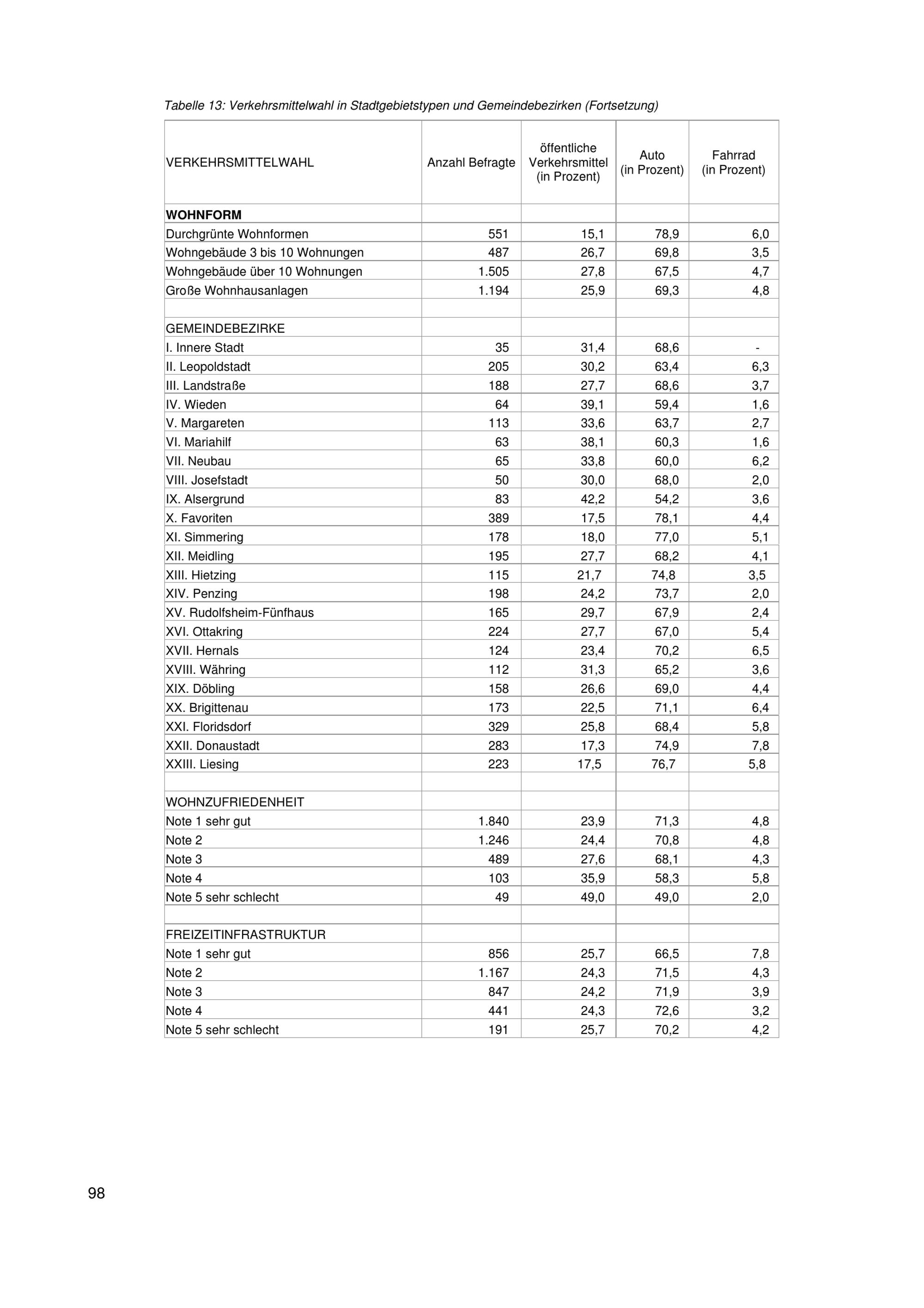 Wiener Wohnstudien : Wohnzufriedenheit, Mobilitäts- und Freizeitverhalten ; sozialwissenschaftliche Wohnstudien im Auftrag der Stadt Wien (Magistratsabteilung 18, Magistratsabteilung 50), erstellt 1998 - 2003 / Herausgeber: Magistratsabteilung 18 - Stadtentwicklung und Stadtplanung ; Inhaltliche Koordination der Studien: Hans-Jörg Hansely [und 1 weitere] ; Nachbearbeitung: Christian M. Peer