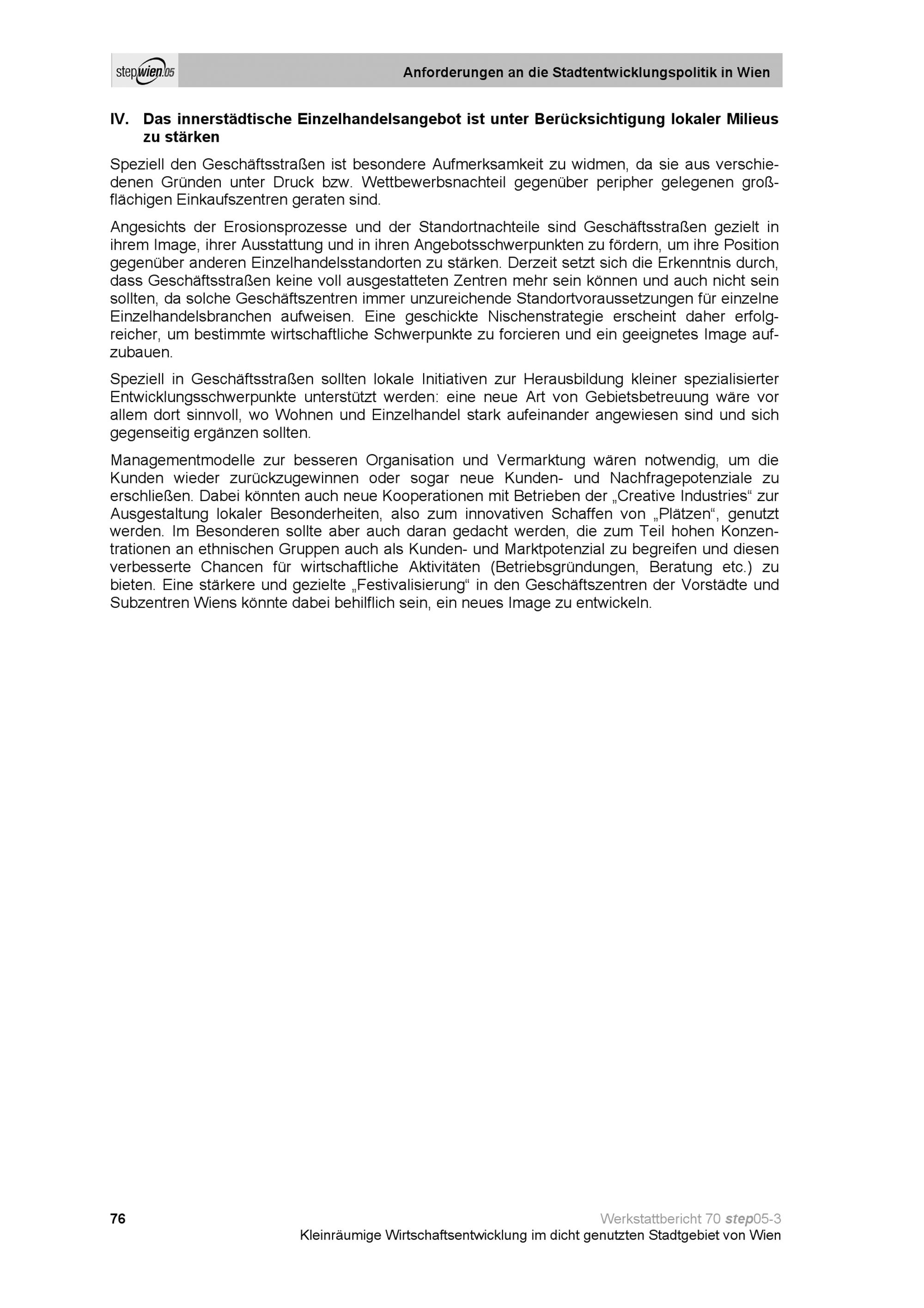 Kleinräumige Wirtschaftsentwicklung im dicht genutzten Stadtgebiet von Wien : Standortmuster ausgewählter wirtschaftlicher Aktivitäten ; Studie im Auftrag der Stadt Wien (Magistratsabteilung 18), durchgeführt in den Jahren 2003 / 2004 / Herausgeber: Magistratsabteilung 18 - Stadtentwicklung und Stadtplanung ; Giffinger, Rudolf ; Kalasek, Robert ; Binder, Birgit