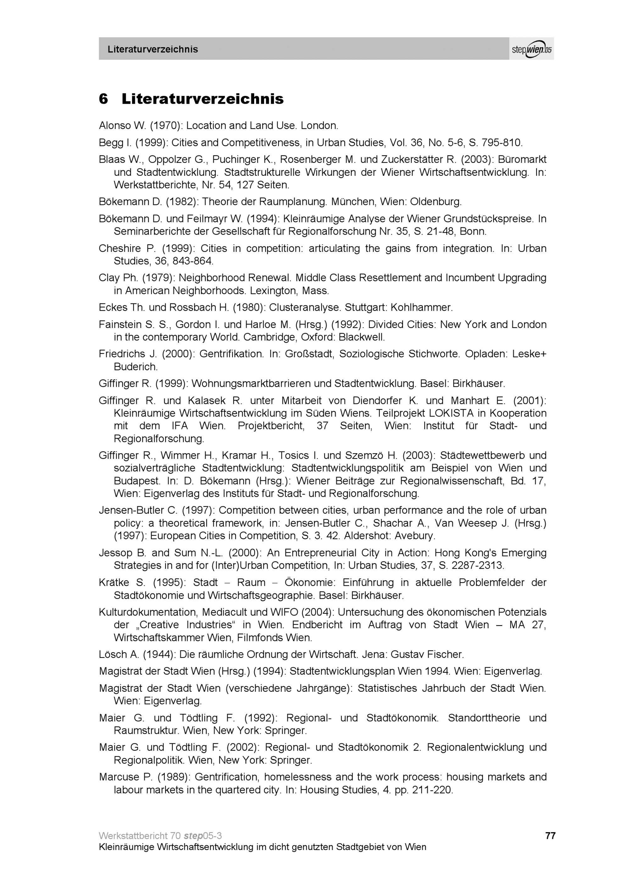 Kleinräumige Wirtschaftsentwicklung im dicht genutzten Stadtgebiet von Wien : Standortmuster ausgewählter wirtschaftlicher Aktivitäten ; Studie im Auftrag der Stadt Wien (Magistratsabteilung 18), durchgeführt in den Jahren 2003 / 2004 / Herausgeber: Magistratsabteilung 18 - Stadtentwicklung und Stadtplanung ; Giffinger, Rudolf ; Kalasek, Robert ; Binder, Birgit