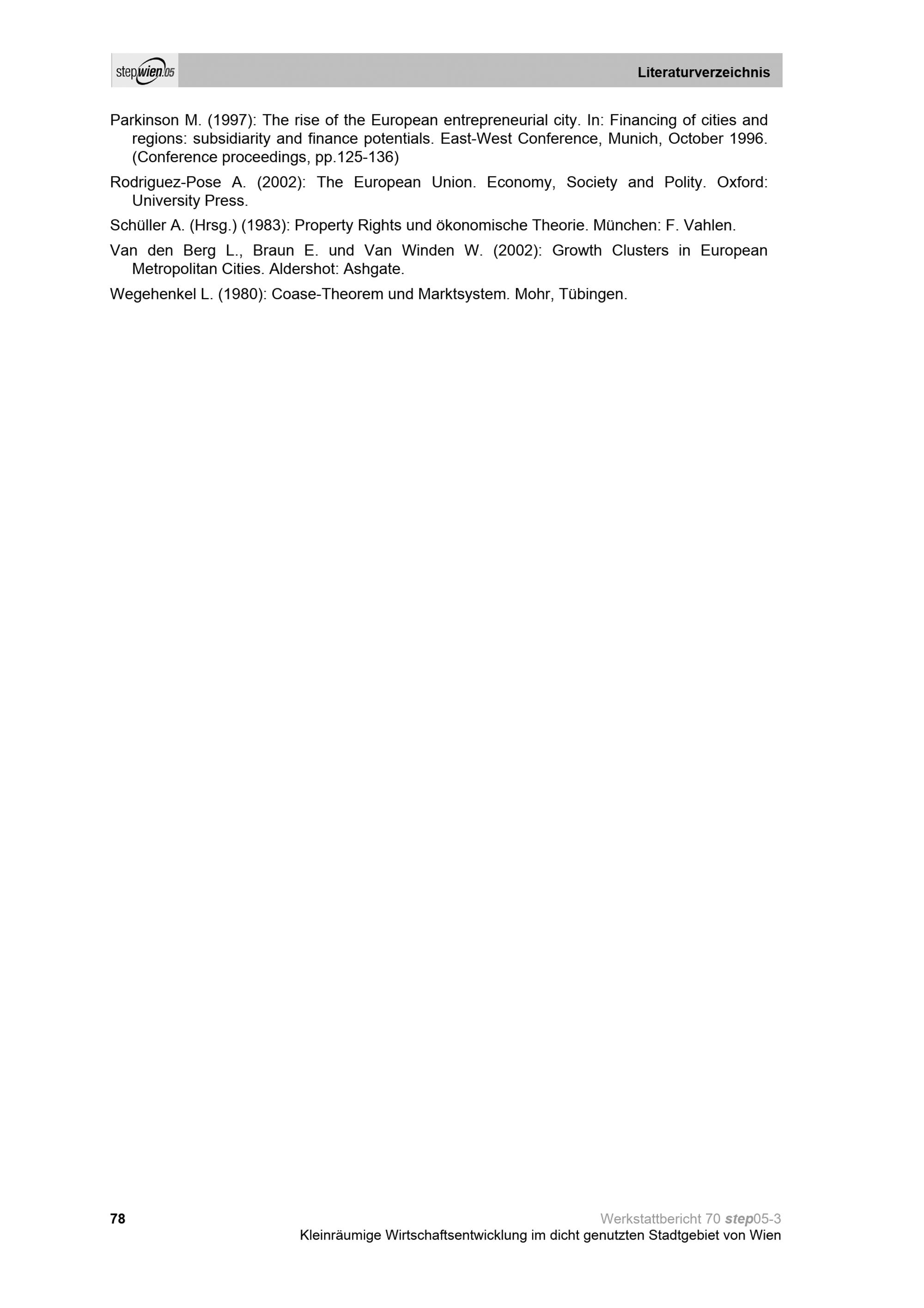 Kleinräumige Wirtschaftsentwicklung im dicht genutzten Stadtgebiet von Wien : Standortmuster ausgewählter wirtschaftlicher Aktivitäten ; Studie im Auftrag der Stadt Wien (Magistratsabteilung 18), durchgeführt in den Jahren 2003 / 2004 / Herausgeber: Magistratsabteilung 18 - Stadtentwicklung und Stadtplanung ; Giffinger, Rudolf ; Kalasek, Robert ; Binder, Birgit