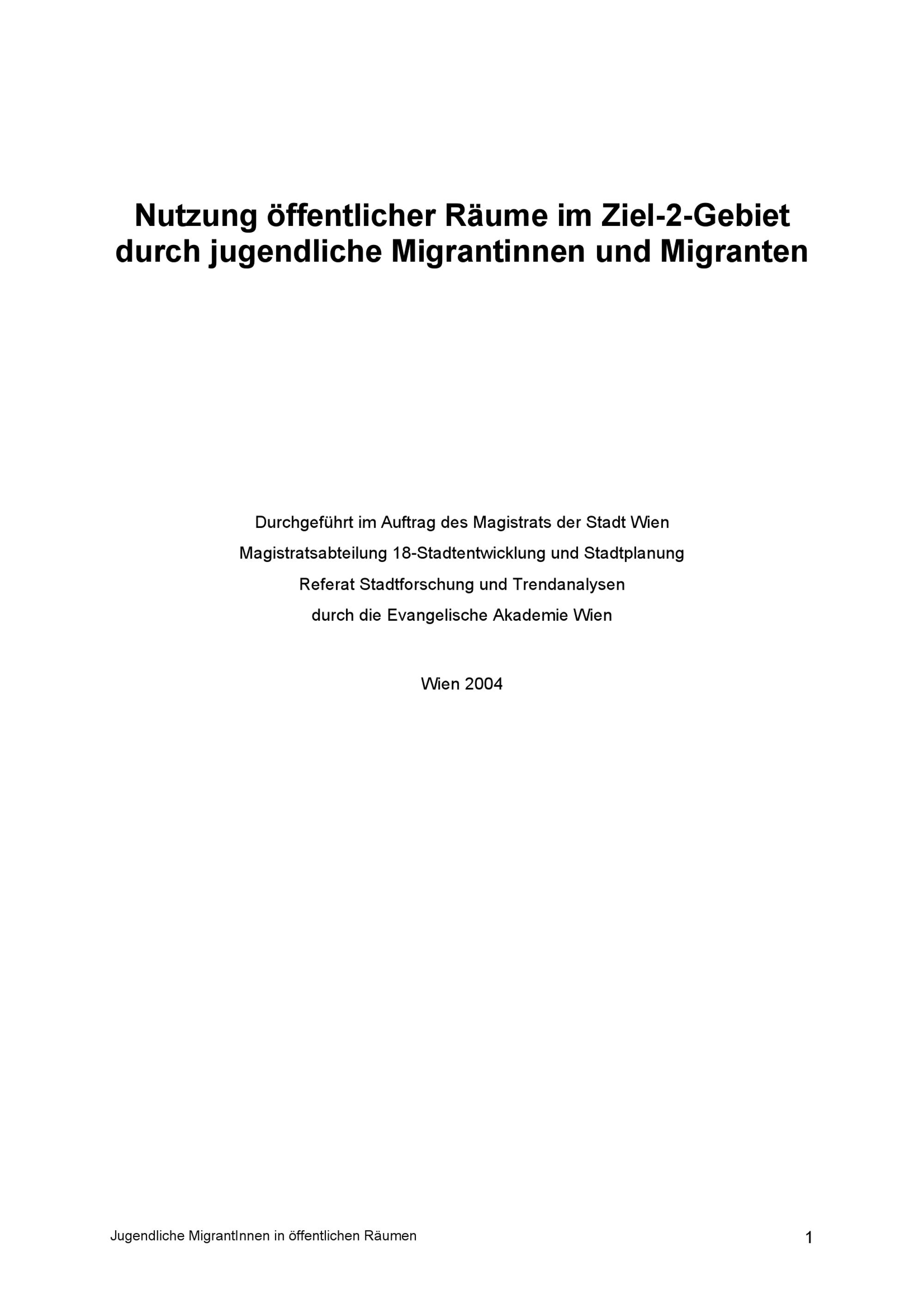 Nutzung öffentlicher Räume im Ziel-2-Gebiet durch jugendliche Migrantinnen und Migranten / Herausgeber: Magistratsabteilung 18 - Stadentwicklung und Stadtplanung