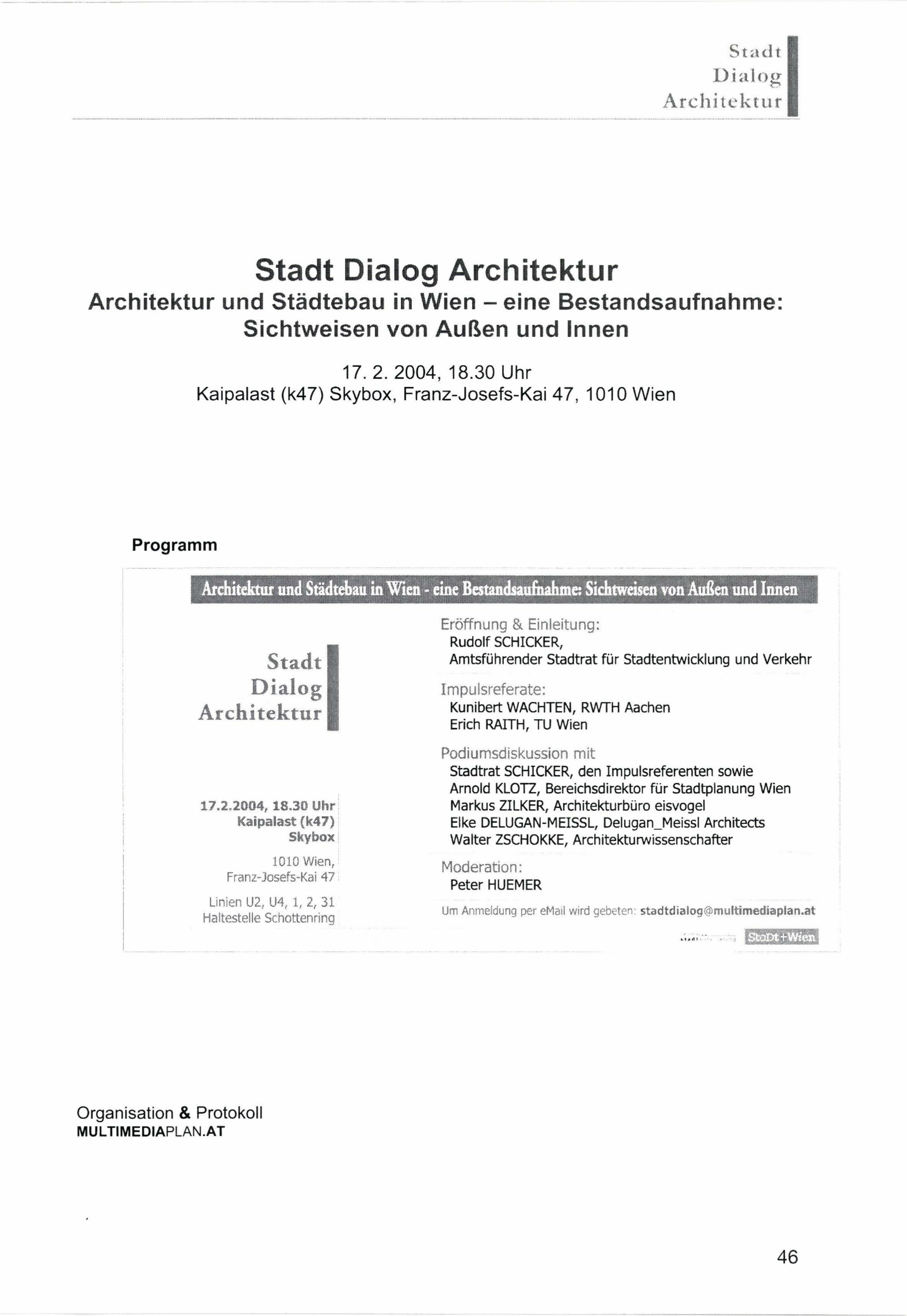 Stadt Dialog Architektur : Wiener Städtebau- und Architekturdialog, 2002 - 2004 / Herausgeber: Magistratsabteilung 18 - Stadtentwicklung und Stadtplanung
