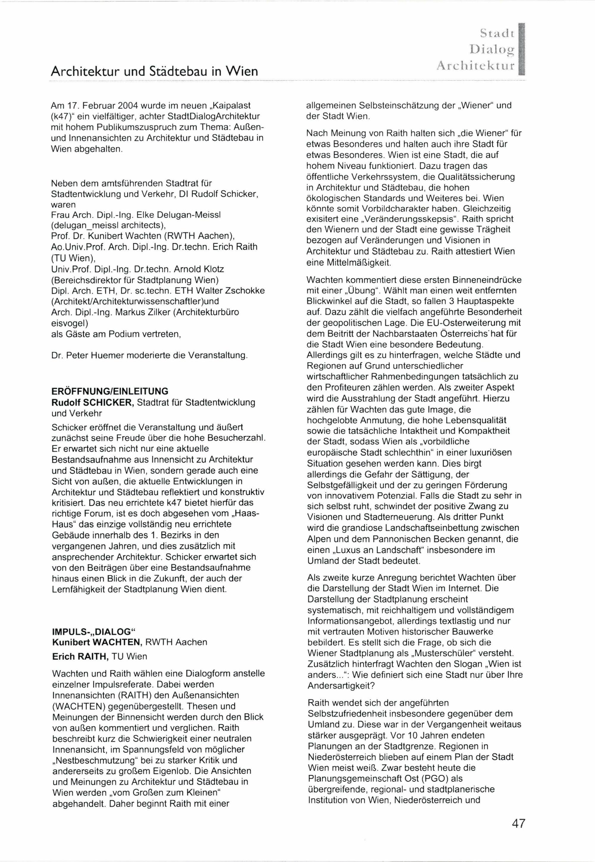 Stadt Dialog Architektur : Wiener Städtebau- und Architekturdialog, 2002 - 2004 / Herausgeber: Magistratsabteilung 18 - Stadtentwicklung und Stadtplanung