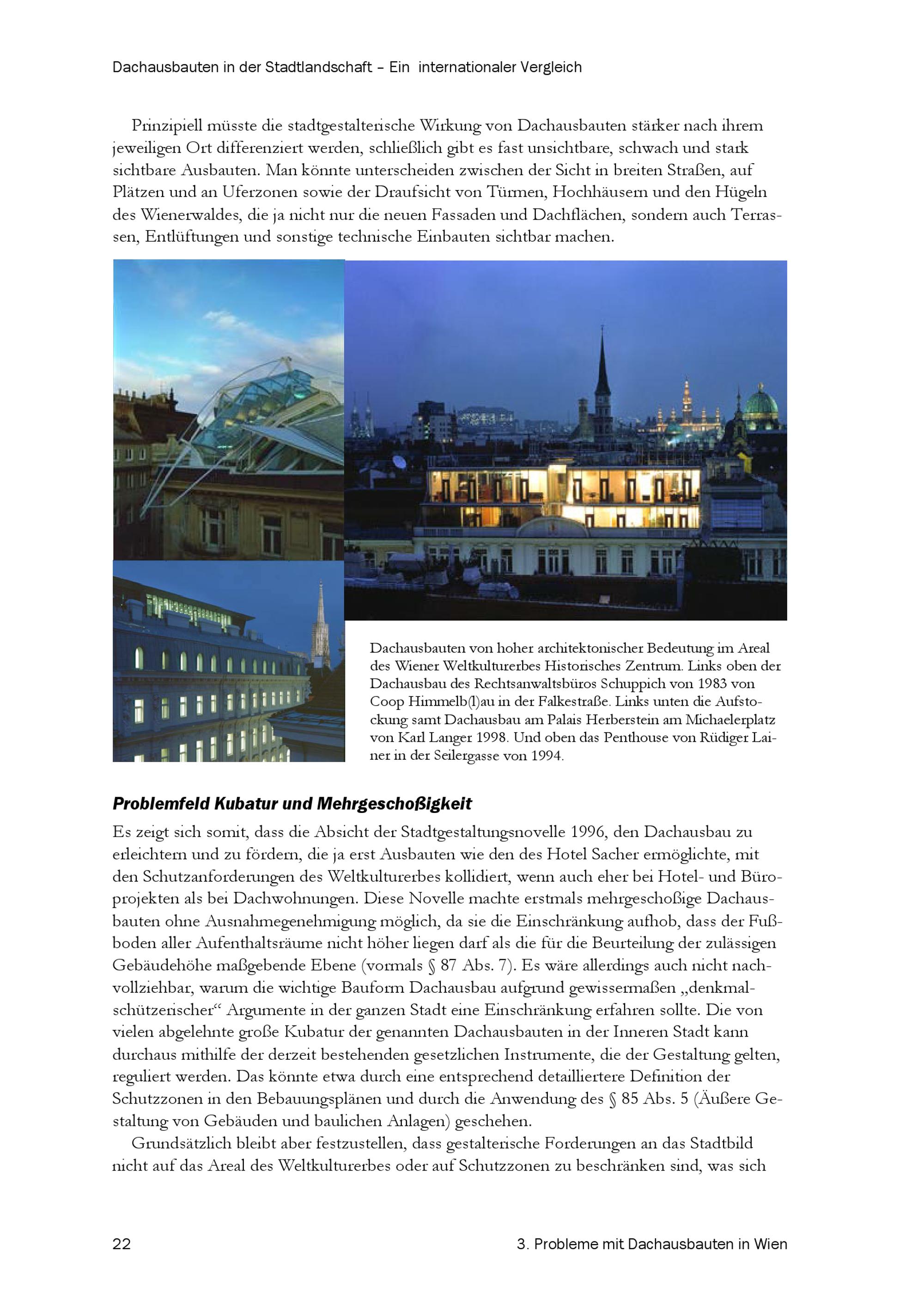 Dachausbauten in der Stadtlandschaft : ein Vergleich der Situation in Wien, Berlin, Prag, Budapest und München / Herausgeber: Magistratsabteilung 18 - Stadtentwicklung und Stadtplanung ; Autor: Robert Temel