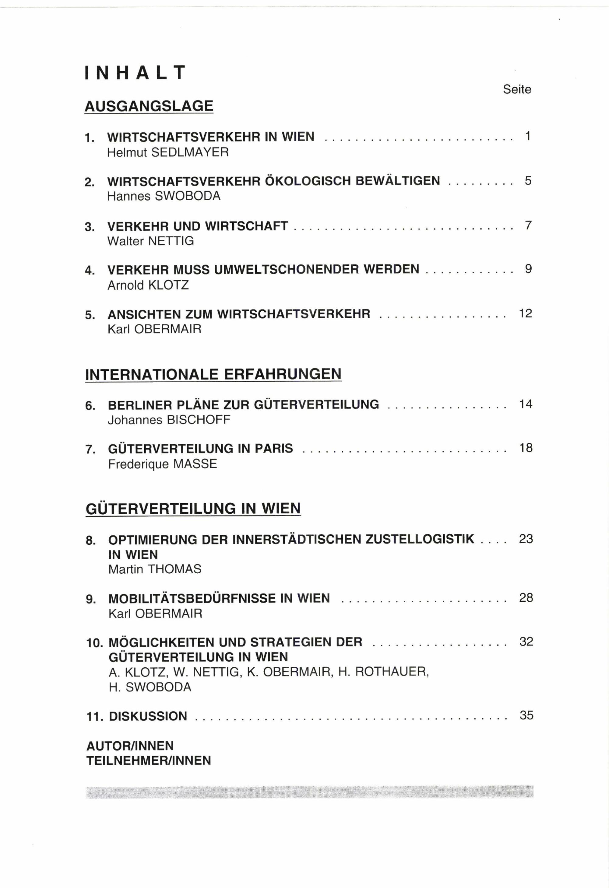 Güterverteilung in der Stadt : neue Wege für Wien ; Ergebnisse des Workshops vom 16. Juni 1994 / Herausgeber: Magistratsabteilung 18 - Stadtentwicklung und Stadtplanung ; Für den Inhalt verantwortlich: Sepp Snizek
