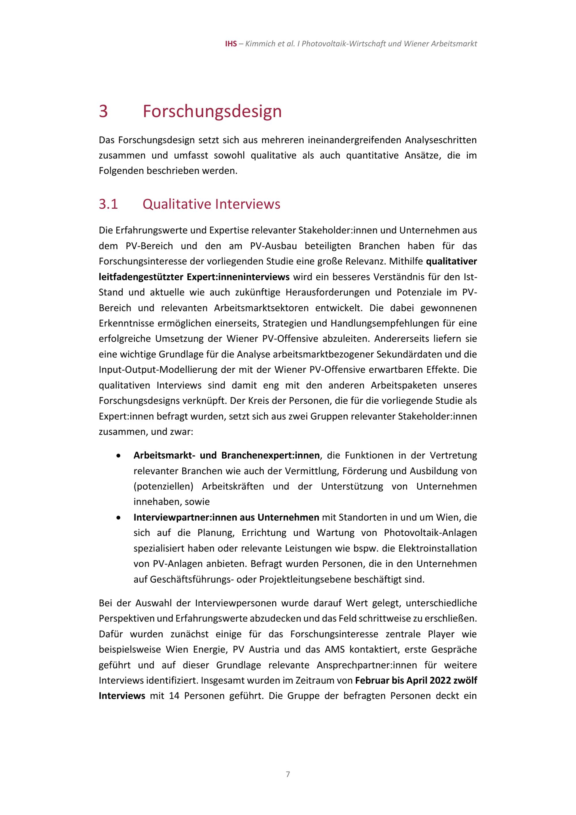 Photovoltaik-Wirtschaft und Wiener Arbeitsmarkt : Studie im Rahmen der Wiener PV-Offensive : Endbericht / Christian Kimmich, Barbara Angleitner, Maria Köpping, Elisabeth Laa, Kerstin Plank, Alexander Schabl, Hannes Zenz ; Studie im Auftrag der Stadt Wien