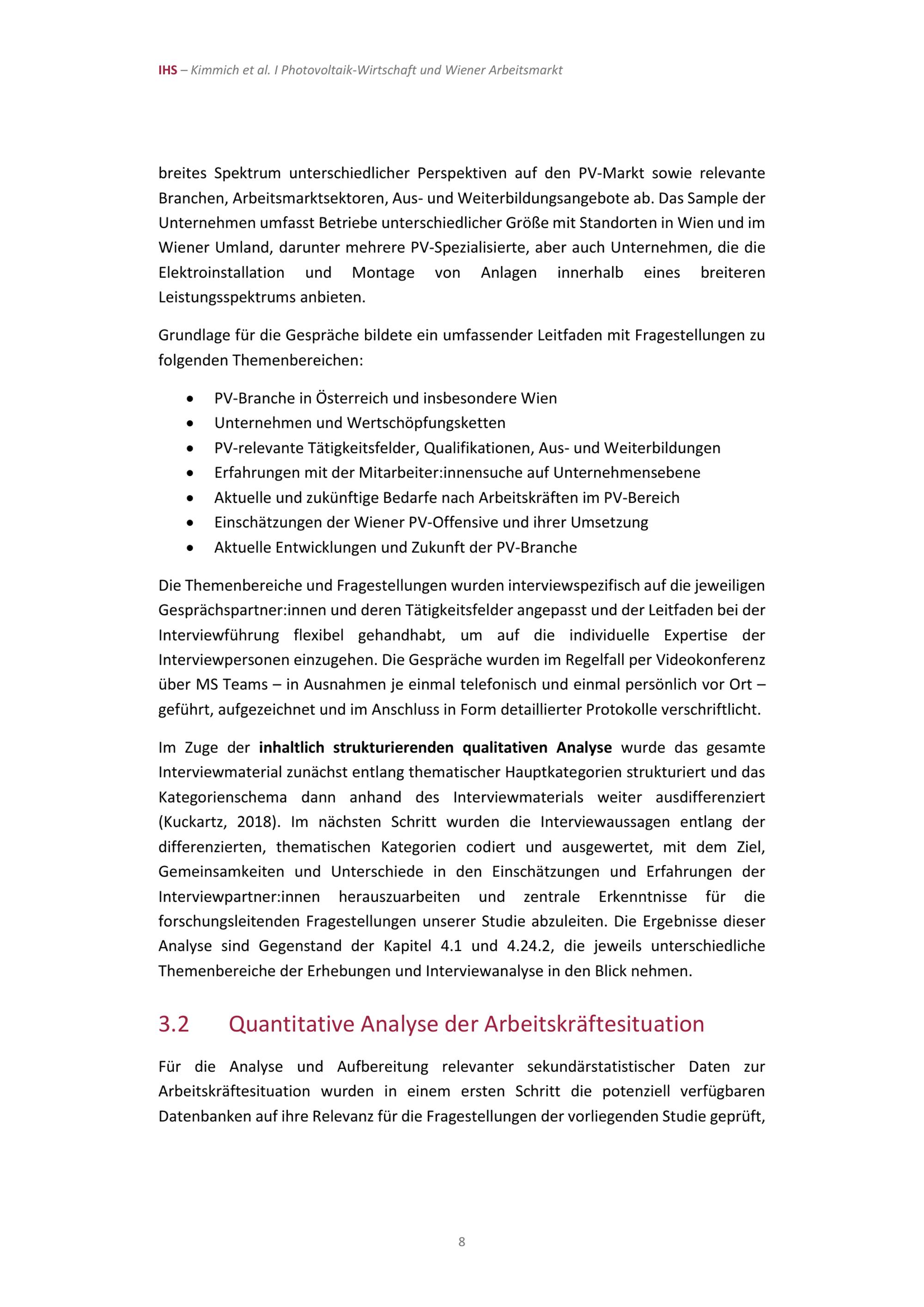 Photovoltaik-Wirtschaft und Wiener Arbeitsmarkt : Studie im Rahmen der Wiener PV-Offensive : Endbericht / Christian Kimmich, Barbara Angleitner, Maria Köpping, Elisabeth Laa, Kerstin Plank, Alexander Schabl, Hannes Zenz ; Studie im Auftrag der Stadt Wien