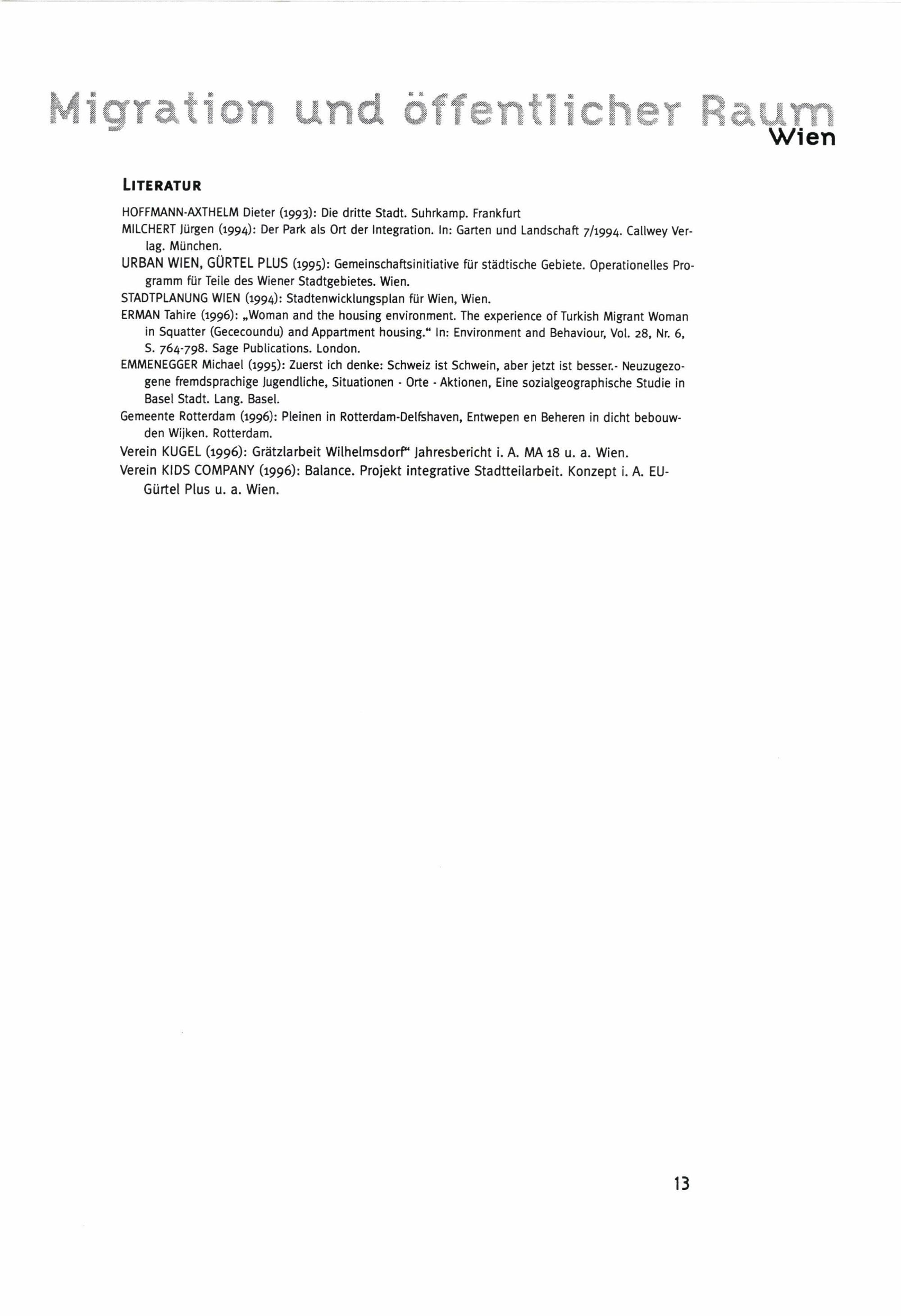 Migration und öffentlicher Raum in Bewegung ... : Strategien und Beispiele aus Rotterdam, Berlin, Zürich, Basel, Ankara und Wien ; Ergebnisse eines internationalen Symposiums / Herausgeber: Magistratsabteilung 18 - Stadtplanung ; Autoren: Shams Asadi [und 8 weitere]
