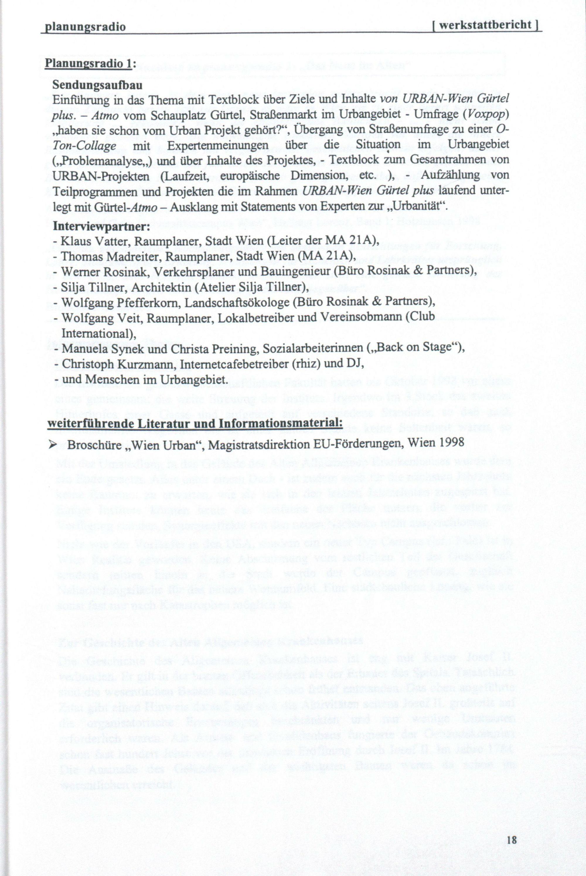 Planungsradio : Pilotprojekt "Stadtplanung im Lokalradio" ; sechs Sendungen zu Wiener Stadtplanungsthemen ; durchgeführt im Auftrag der MA 53, in Zusammenarbeit mit der MA 21 A / Herausgeber: Magistratsabteilung 18 - Stadtplanung ; Martin Reishofer ; Andreas Zinggl