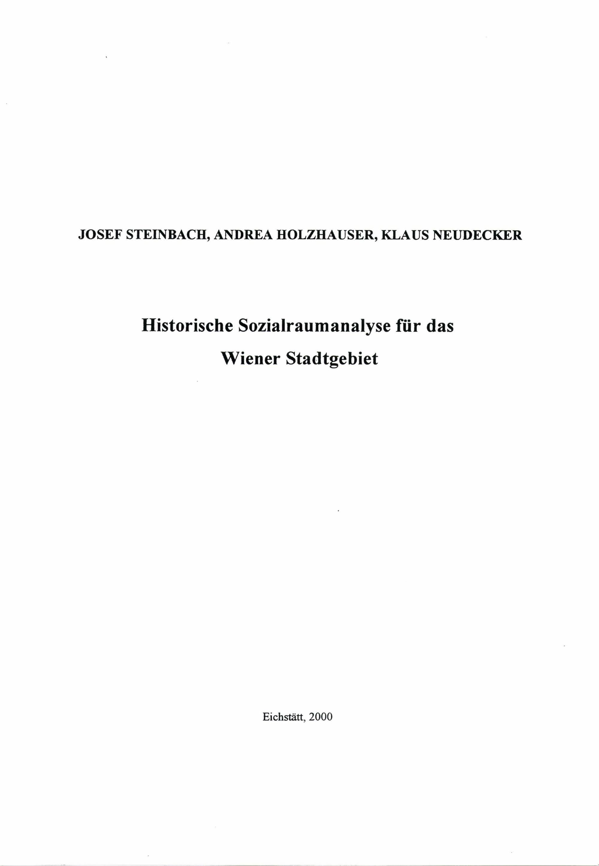 Historische Sozialraumanalyse für das Wiener Stadtgebiet / Herausgeber: Magistratsabteilung 18 - Stadtplanung ; Inhaltliche Bearbeitung: Steinbach Josef [und 2 weitere]