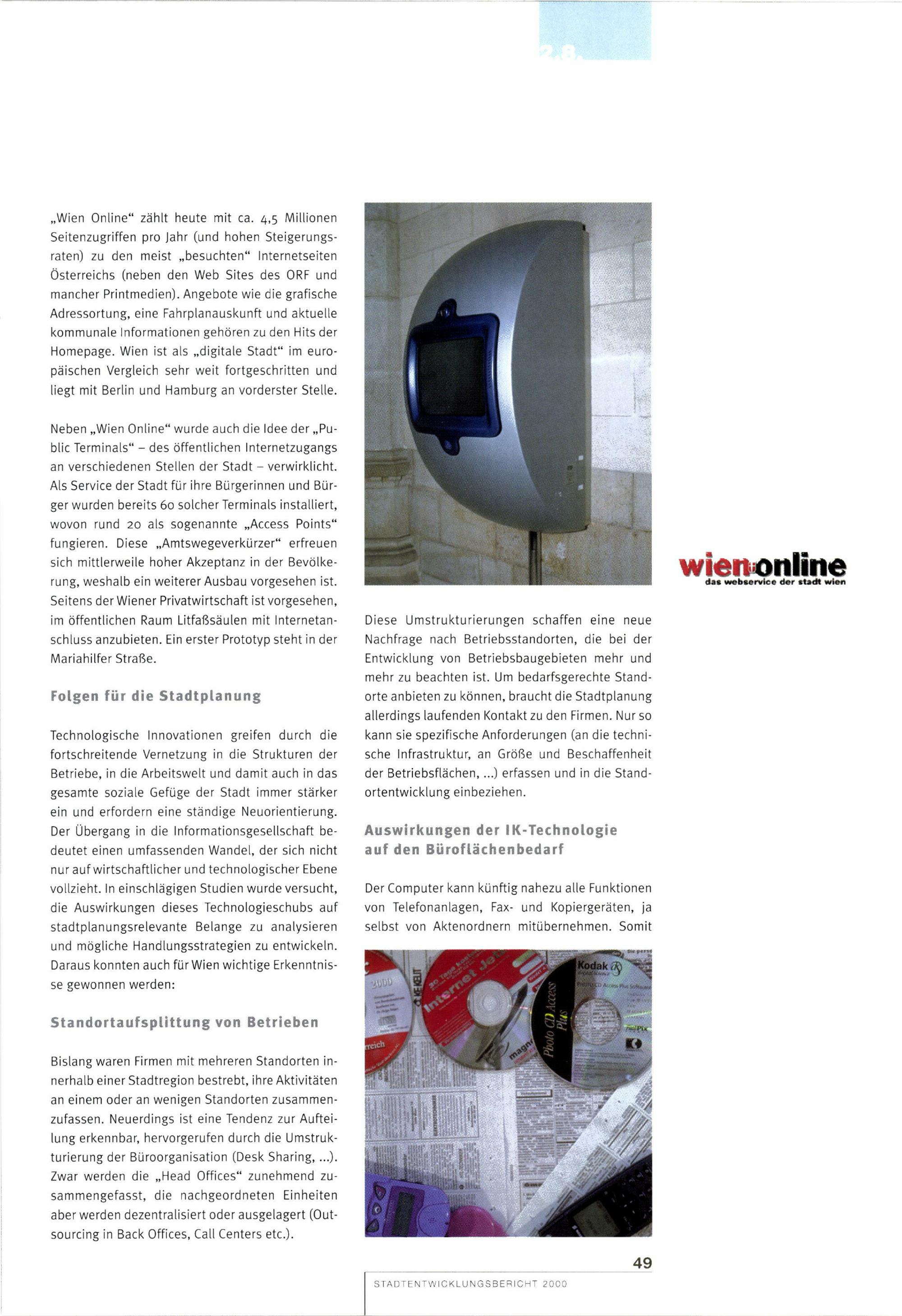 Stadtentwicklungsbericht 2000 : Beiträge zur Fortschreibung des Wiener Stadtentwicklungsplans / Herausgeber: Magistratsabteilung 18 - Stadtplanung ; Textliche Bearbeitung und Redaktion: Reinhard Seiß