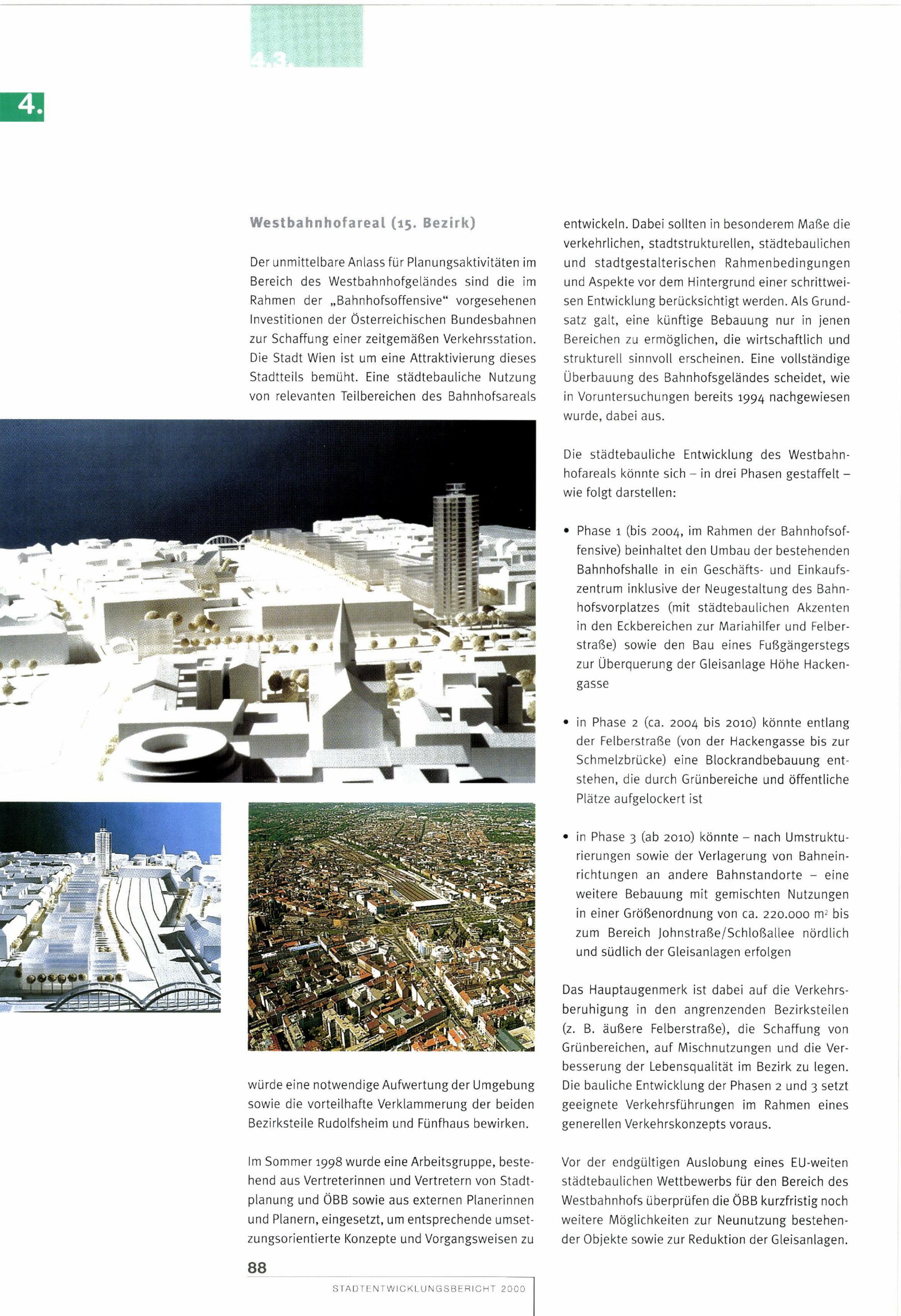 Stadtentwicklungsbericht 2000 : Beiträge zur Fortschreibung des Wiener Stadtentwicklungsplans / Herausgeber: Magistratsabteilung 18 - Stadtplanung ; Textliche Bearbeitung und Redaktion: Reinhard Seiß