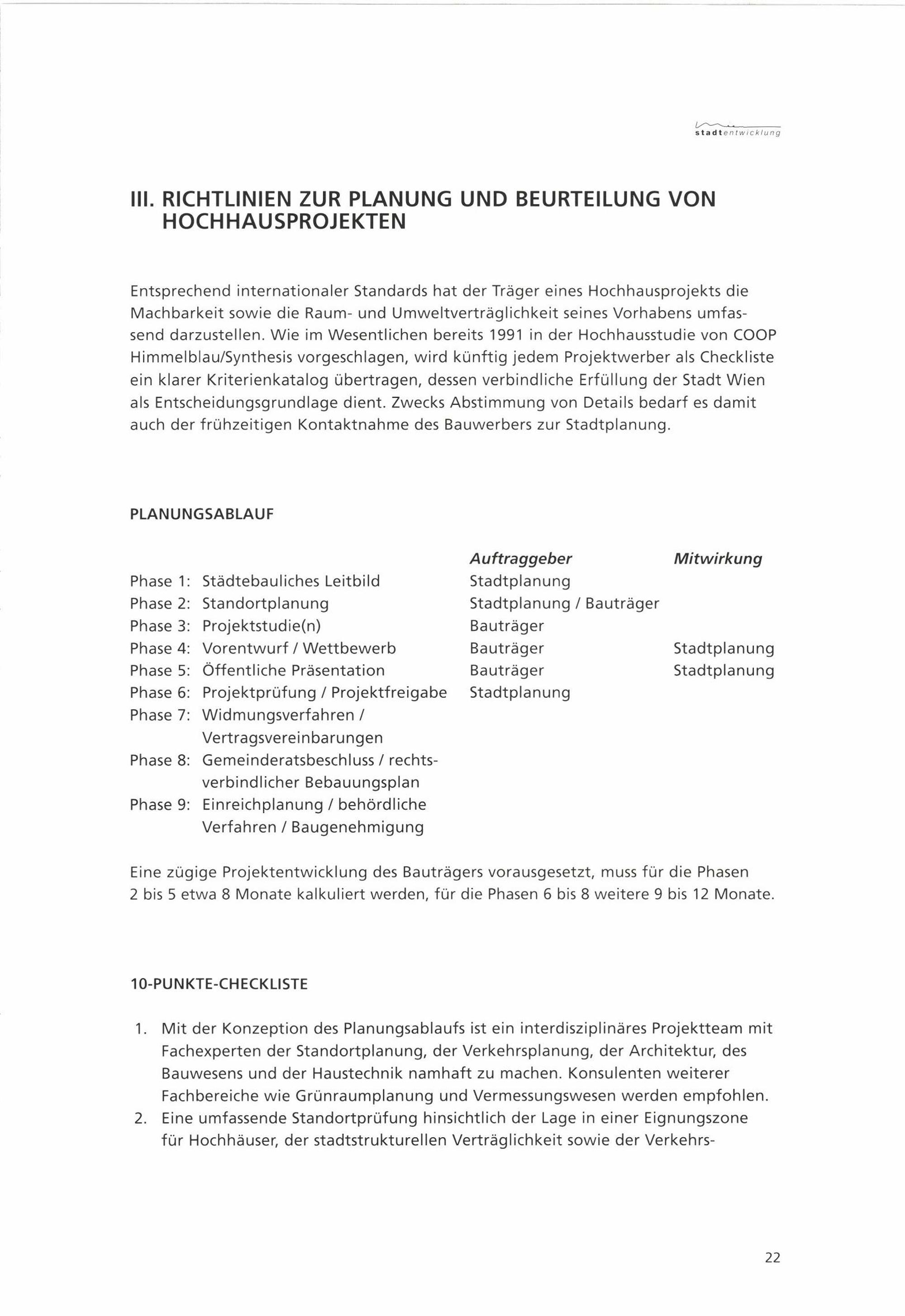 Hochhäuser in Wien - städtebauliche Leitlinien : Richtlinien für die Planung und Beurteilung von Hochhausprojekten / Herausgeber: Magistratsabteilung 18 - Stadtentwicklung ; für den Inhalt verantwortlich: Klaus Vatter